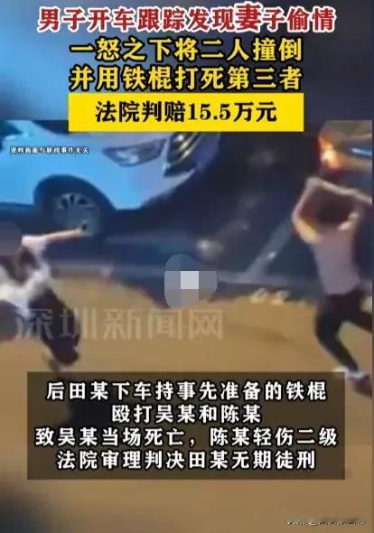 浙江温州,男子意外发现妻子出轨后,开车将妻子和她的情人撞倒在地,然后持棍殴打妻子和她的情人,致妻子轻伤、妻子的情人死亡。案发后,死者家属要求男子赔偿179万余元。法院判了! 浙江温州瑞安深夜的街头,一场因婚姻背叛引发的惨剧突然上演,男子一时冲动酿成无法挽回的后果,不仅害了别人也毁了自己,后续的赔偿纠纷更是牵动人心。 田某与妻子陈某结婚多年,原本安稳的日子从2024年起逐渐出现裂痕,两人感情越来越淡,经常处于冷战状态。 这段时间里,陈某悄悄和自己的贵州籍老乡吴某走得极近,慢慢发展成不正当男女关系,两人私下频繁见面,一直瞒着田某。 田某早就察觉妻子不对劲,经常晚归且手机不离手,对自己更是愈发冷淡,心里渐渐生出怀疑,多次旁敲侧击都被陈某敷衍过去,这让他心里的疑虑越来越深。 为了弄清真相,田某开始悄悄跟踪妻子,终于在2024年8月28日晚上,摸清了妻子的行踪,确认了她和吴某的不正当关系。 亲眼目睹妻子背叛自己的场景,田某瞬间被愤怒冲昏头脑,没有选择冷静处理,而是驾车在瑞安市仙降街道垟头村平安大道南路附近守候,心里满是报复的念头,等着两人出现。 直到次日凌晨1点左右,吴某和陈某并肩走在路边,刚经过平安大道南路16号附近,早已等候在此的田某猛地发动车辆,朝着两人径直撞了过去。 巨大的撞击声打破了深夜的宁静,吴某和陈某当场被撞倒在地,田某驾驶的车辆以及路边停放的三辆无辜车辆都受到不同程度损坏,车身刮擦痕迹明显,部分零件散落一地。 撞人后,田某并没有停手,反而怒气冲冲地从车上拿出一根铁撬棍,走到倒地的两人身边,对着吴某和陈某不断殴打。 陈某当场受伤蜷缩在地,无法动弹,吴某更是伤势严重,头部受到重创,鲜血直流,失去了反抗能力。周围有居民被动静惊醒,看到眼前的暴力场景吓得不敢靠近,只能赶紧联系相关部门。 随后,田某在当天凌晨1点24分,通过他人手机拨打了报警电话,留在现场等候民警处理,没多久民警赶到将其带走。 受伤的吴某和陈某被紧急送往医院救治,遗憾的是,吴某因严重颅脑损伤,经抢救无效当天就不幸身亡,陈某则被诊断为轻伤一级,经过治疗后脱离危险。 案件进入司法程序后,2025年3月,温州市中级人民法院对田某的刑事案件进行审理,法院认定田某构成故意杀人罪, 考虑到他有自首情节,家属提前向法院缴纳了10万元赔偿款,且两名被害人对案件引发存在一定过错,依法对其从轻处罚,判处田某无期徒刑,剥夺政治权利终身,作案工具铁撬棍予以没收。 之后,死者吴某的亲属将田某起诉至法院,提出了179万余元的民事赔偿诉求,其中包含死亡赔偿金、精神损害抚慰金等多项费用。 瑞安市人民法院审理后,核定家属的合理损失为15万余元,仅支持医疗费和丧葬费部分。 对于家属主张的死亡赔偿金、精神损害抚慰金以及办理丧葬事宜的交通费、住宿费等费用,依据刑事诉讼法相关司法解释,均未予以支持,最终判决田某赔偿吴某亲属155985.01元。 一场婚姻纠纷最终酿成命案,不仅让一个家庭失去亲人,也让另一个家庭支离破碎,赔偿金额的判决更是引发诸多讨论。 对此,你们有什么看法,欢迎评论留言~