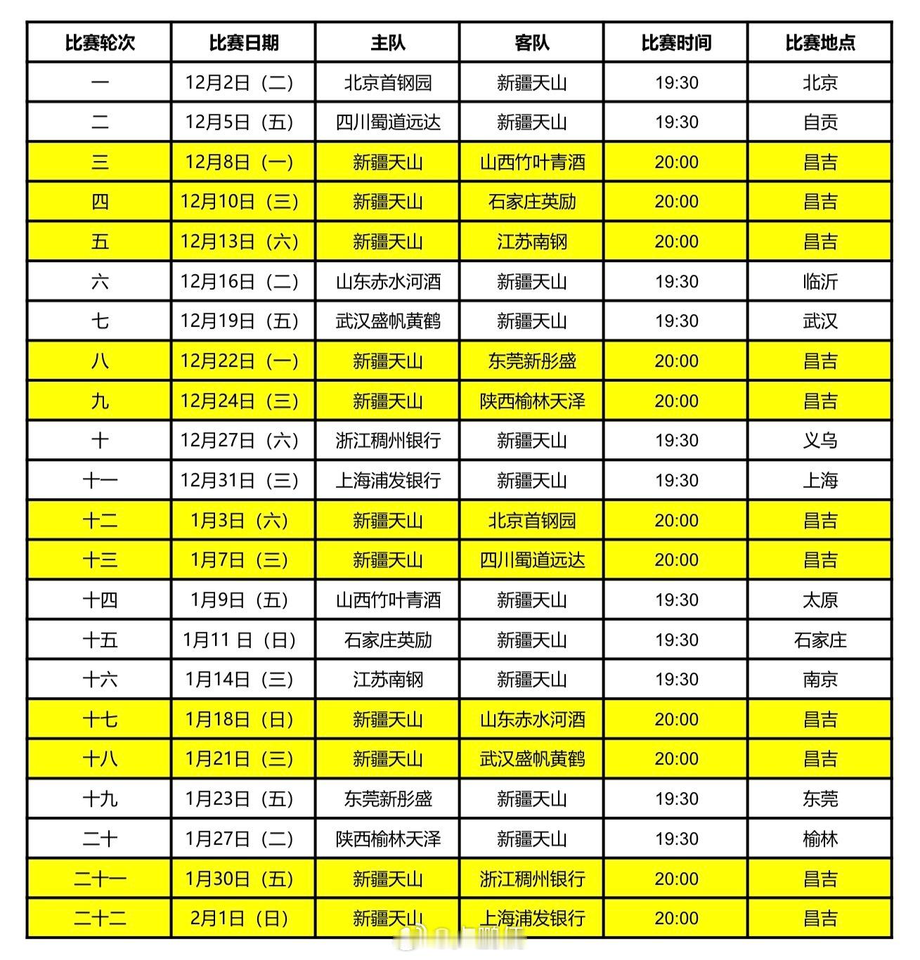 2025-26赛季新疆女篮赛程出炉,首场比赛客场对阵北京。