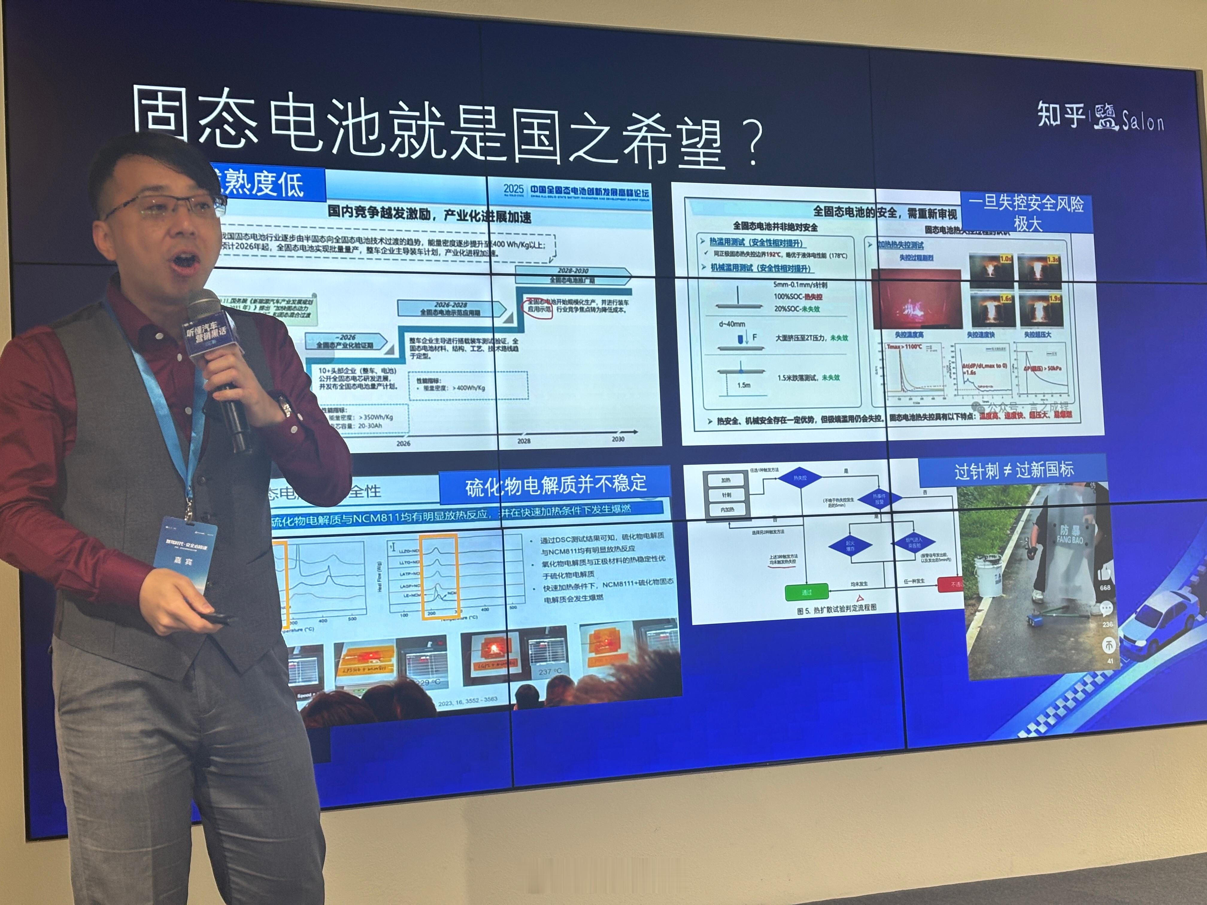 要保命 听刘博的 总结下刘博分享的几个观点:1.未来的电池新规更接近用户真实场景的复合工况,包括碰撞、颠簸、涉水,热失控等;2.动力电池的安全是一个复杂的系统安全,没有那种技术可以一劳永逸,没有那种测试可以保证一定安全。3.三元锂与磷酸铁锂携手并进。4.固态电池,安全性有待进一步证实。5.针刺仅仅是热扩散实验中三种触发单体热失控方式之一。