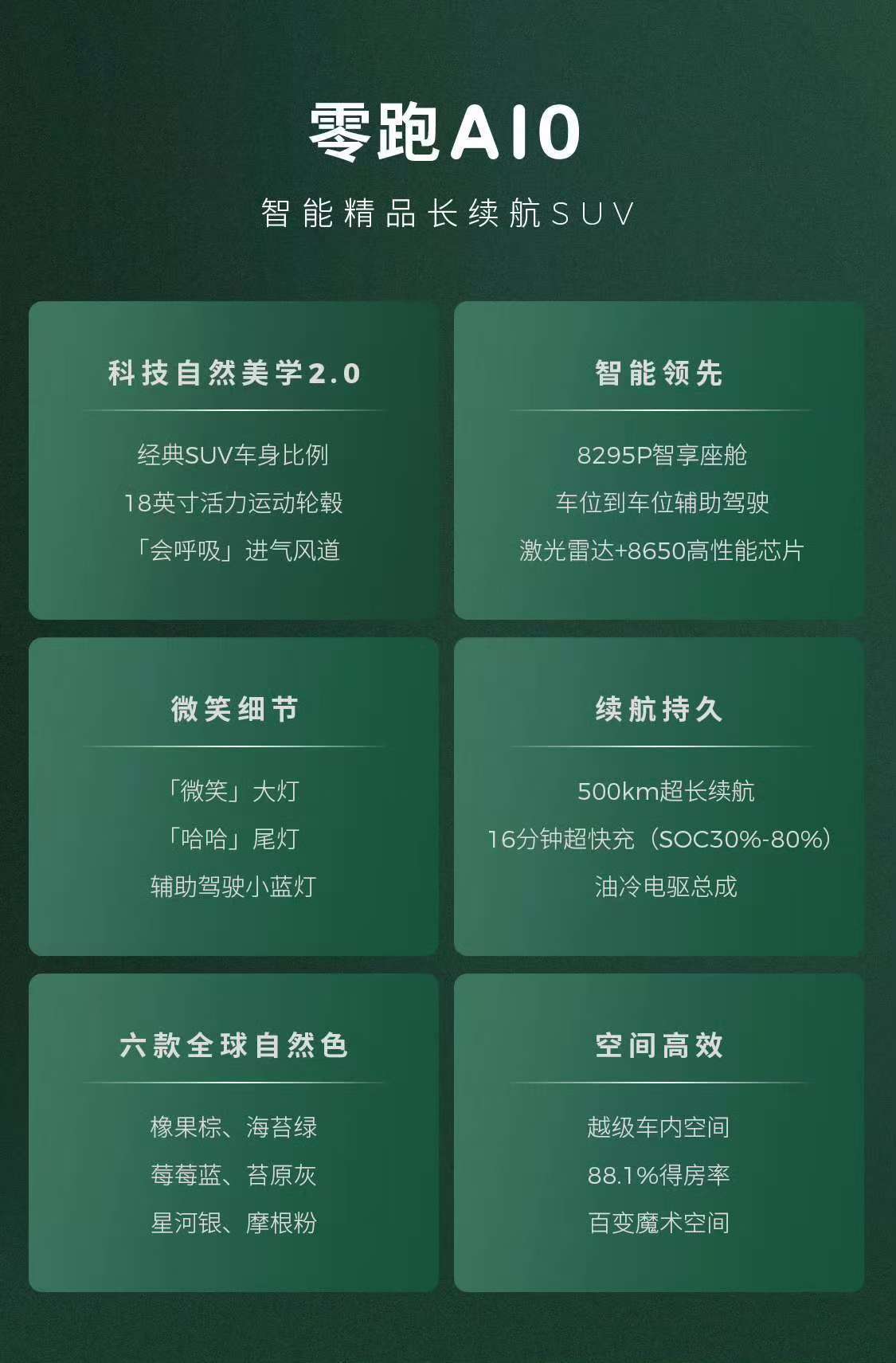 零跑A10这“海苔绿”也太会了吧!看着就高级到想上手摸两把~不光颜色绝,这车长得跟“行走的风景线”似的:悬浮车顶像要飞起来,“哈哈尾灯”一亮就自带快乐buff,还有那18英寸轮毂往那一站,气场直接拉满!更狠的是实力:500km续航+16分钟快充,手机都没充这么快!88.1%的得房率,坐进去腿能随便伸,连智能驾驶都给配了“小蓝灯”,安全感直接焊在车身上。现在广州车展就能近距离瞅这抹高级绿,看完直接想订车!对了,99块就能抢盲订权益,前2000名还有400块的神秘礼,这羊毛不薅白不薅啊!