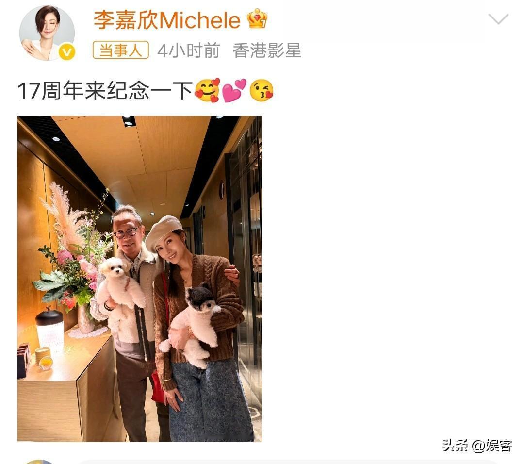 李嘉欣晒照庆祝结婚17周年!这一身行头价值50万!果然是阔太太啊!而且李嘉欣太会保养了,刚结婚时,李嘉欣和许晋亨看不出相差八岁,现在看上去像差距18岁!李嘉欣