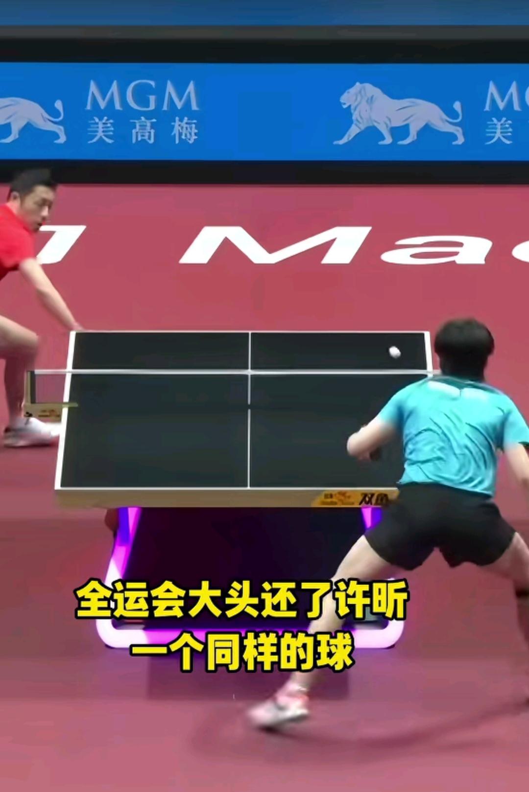 十年河东,十年河西。大概说的就是曾经许昕跟现在的王楚钦。 多年前的一场比赛,作为前辈的许昕在跟王楚钦的比赛中曾经把王楚钦调离左半台后,随后一个反手变直线打到对方的左半台,看到小白球在台面弹了一下飞走了,极致的落点,许昕随手示意,留下王楚钦站在原地发呆。 今年的全运会上,再度上演了这样经典的一幕,只是球台两边的人换了一下位置,王楚钦把许昕完全调离左半台后,随手一个反手变直线,这一次是许昕站在球台右侧,望着小白球从左侧飞走,王楚钦也抬手示意了一下。 相信许昕一定记得这个球,曾经非常熟悉的画面,自己是原创,现在是王楚钦把这一套他曾经用过的战术发挥得更加淋漓精致。