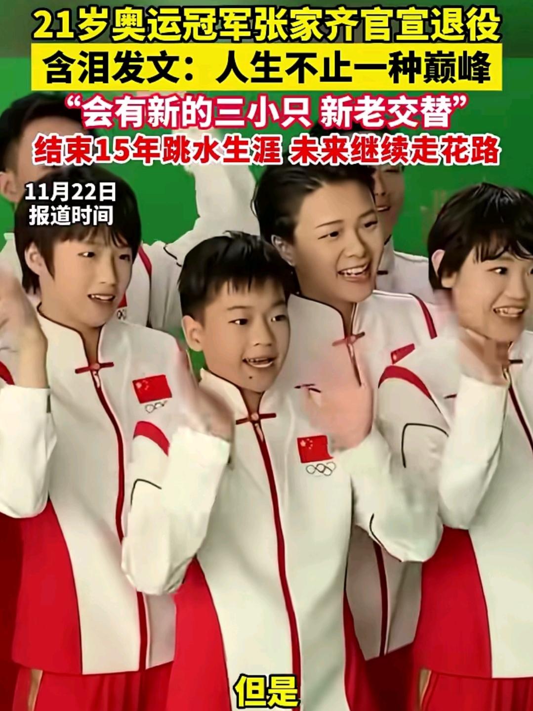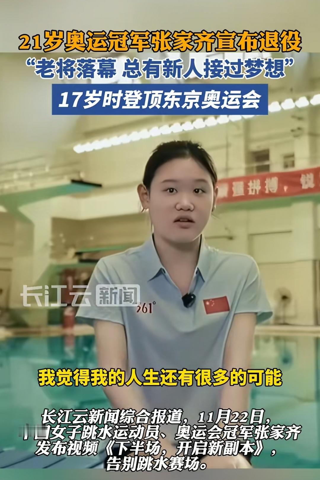 真的不敢相信这么可爱的小娃娃已经退役了,北京队的张家齐,依然记得东京奥运会上张家齐、全红婵、陈芋汐三个可可爱爱的小姑娘一起走进了大家的视线,如今张家齐已经退役了。 相信张家齐说的人生除了跳水还有很多可能,人生不只有跳水,人生不只有十米跳台,人生还有很多可能。 让我们祝福张家齐以后的人生更加辉煌!