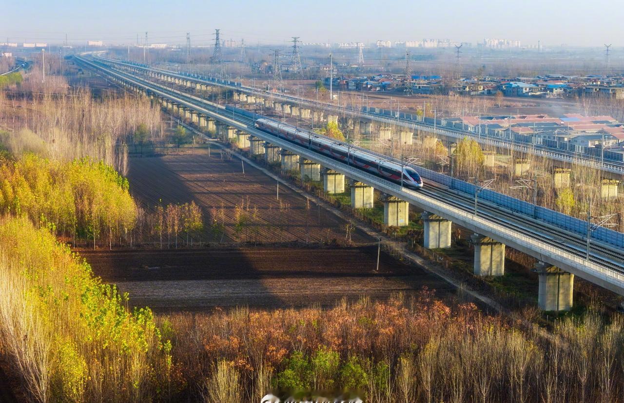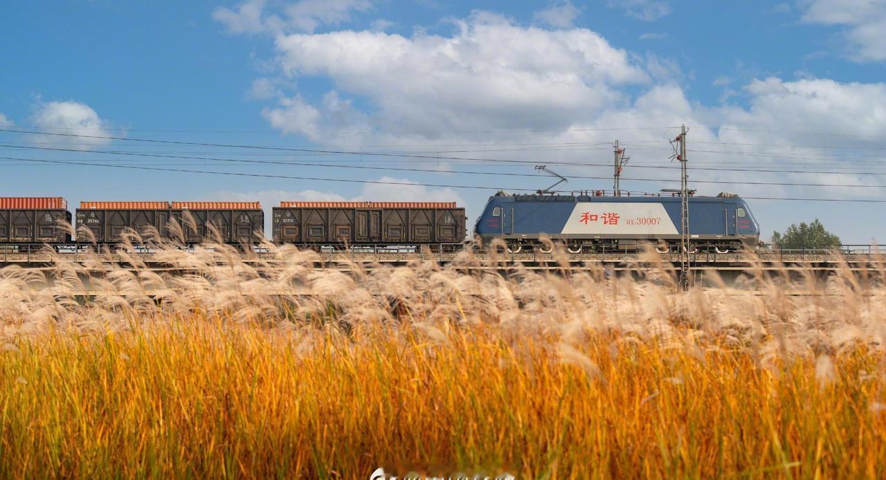 冬日晴空下,枯草在风中起伏,与飞驰的列车,融汇成一幅画。(文图:马星魁)@中国铁路