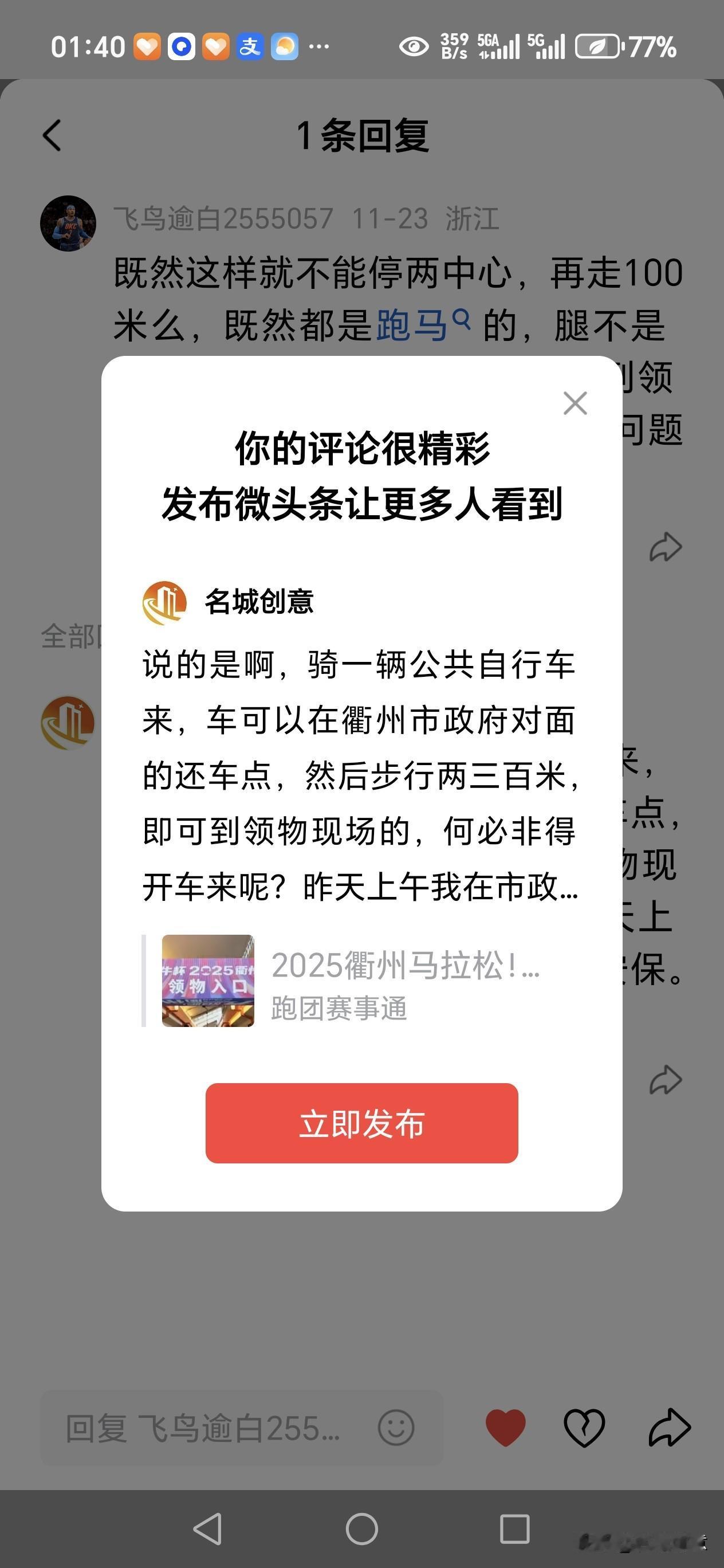 说的是啊,骑一辆公共自行车来,车可以在衢州市政府对面的还车点,然后步行两三百米,即可到领物现场的,何必非得开车来呢?昨天上午我在市政府大院外做衢马的安保。名城创意 打卡退休生活//@飞鸟逾白2555057:既然这样就不能停两中心,再走100米么,既然都是跑马的,腿不是好使,何必这么懒,非要车开到领物现场[泪奔][泪奔][泪奔]停车根本不是问题[抠鼻][抠鼻][抠鼻]