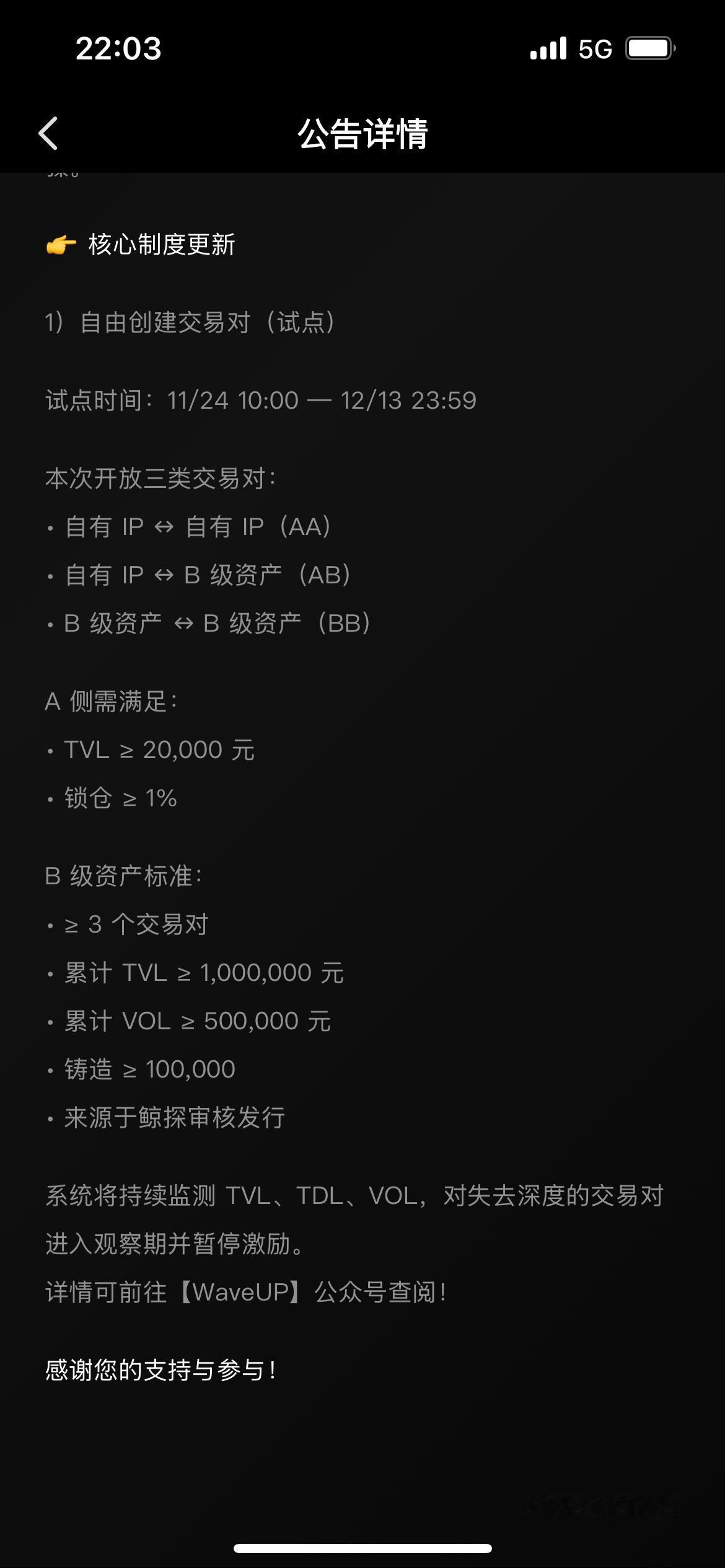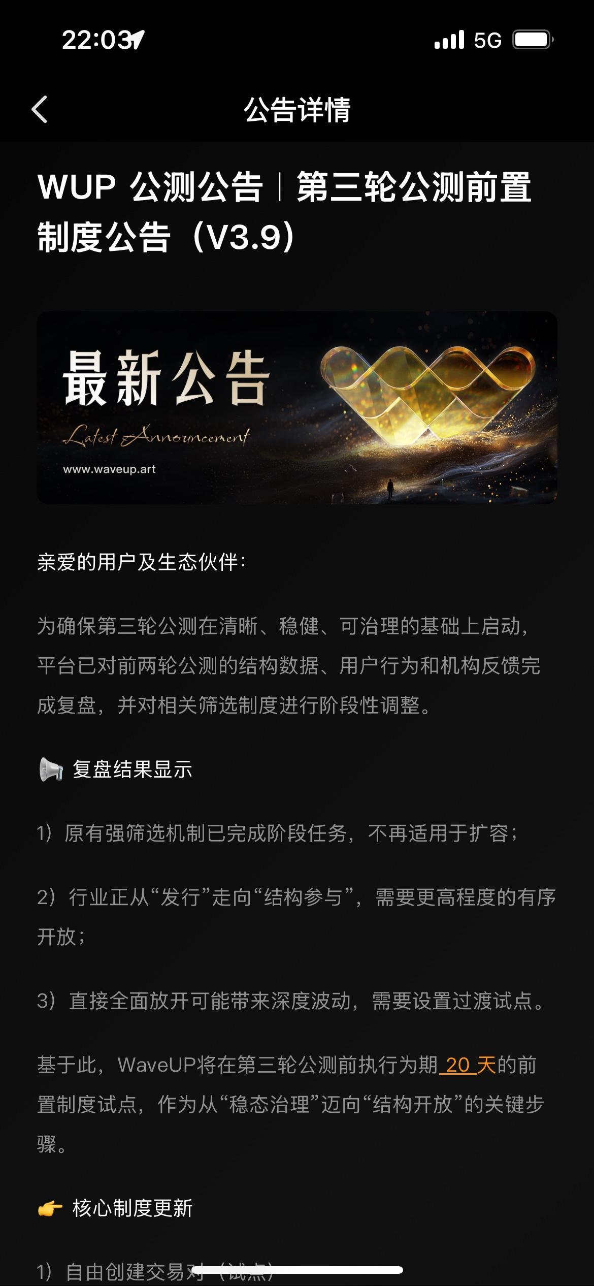 WaveUp第三次公测前制度公告引发鲸探市场大规模上涨是否是昙花一现? WaveUp第三次公测制度公告引发的市场热潮绝非昙花一现,而是鲸探生态价值重新觉醒的必然表现。这场上涨背后有着坚实的制度创新支撑,标志着鲸探正在从单纯的数字收藏平台向完善的数字生态体系蜕变。 WaveUp引入的AMM机制与参与式经济模型,为鲸探构建了可持续的价值循环体系。用户自由创建交易对不仅解决了长期困扰数藏市场的流动性难题,更让藏品价值在真实交易中被重新发现。珍珠翻倍与Vol挖矿活动则将用户从被动收藏者转变为生态共建者,这种身份转变带来的参与热情将持续滋养生态发展。 更重要的是,WaveUp的制度设计体现了对鲸探生态的深度理解。前置制度的规范性与创新活动的激励性相结合,既保障了生态健康发展,又激发了市场活力。这种制度红利不会随着时间消退,反而会随着参与者的增加而形成网络效应,持续释放价值。 从市场表现看,此次上涨伴随着交易量与用户活跃度的同步提升,说明上涨基础坚实。这不同于单纯消息刺激的短期波动,而是生态价值重构过程中的必然反应。 WaveUp与鲸探的深度融合,正在打造一个更具韧性和活力的数字生态。这场由制度创新引领的市场觉醒,不是终点而是起点,它预示着鲸探生态将进入可持续发展的新阶段。鲸探藏品 鲸探数子藏品 鲸探 web3 鲸探数字资产 加密web3 web3转型