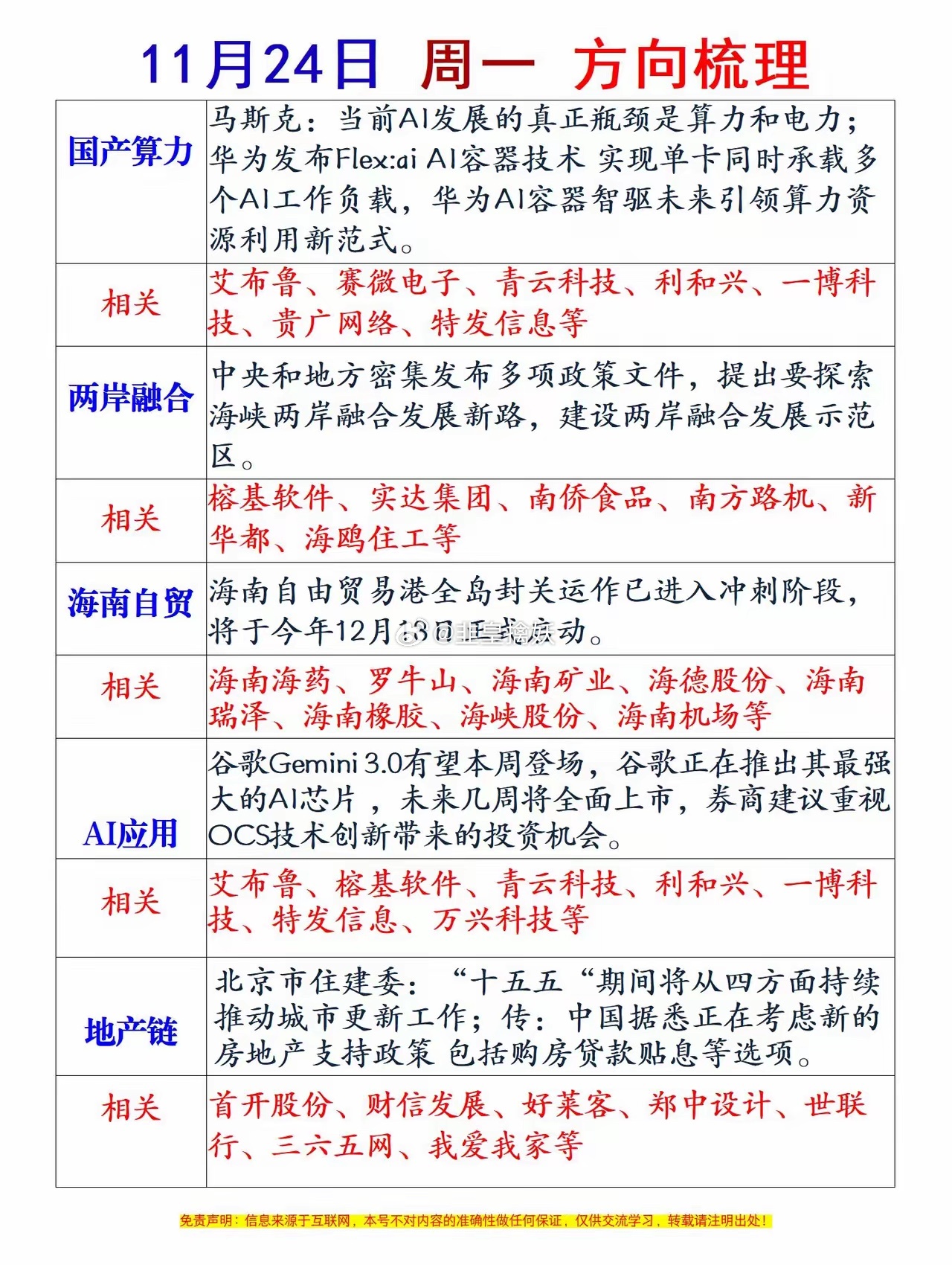 【11.24日热点前瞻及个股排雷】【谷歌计划每6个月将算力容量翻倍谷歌算力供应