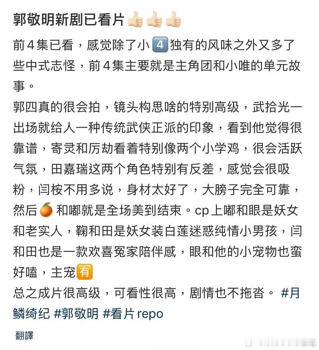 鞠婧祎 曾舜晞 陈都灵 田嘉瑞《月鳞绮纪》repo🈶,评价都比较正面,期待播出~