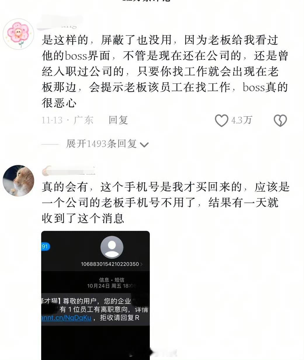 BOSS这操作严重侵犯了用户的隐私权,太可恶了,这也是灰产?虽然我目前没有想换工作的想法和打算,但是偶尔我也会上BOSS看看大厂的最新岗位情况,看看行情发展现状,并没有投过简历,没有主动和岗位招聘人私信沟通,如果这样我的行为也会泄露,那很容易对我造成很严重的误会希望有了解清楚的人出来说一下,什么情况下个人信息会泄露给单位,这太过分了,希望有专业的人能收集证据用法律整顿一下这个行业