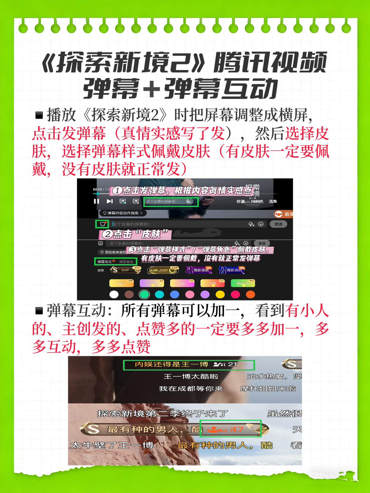 热度须知【《探索新境2》腾讯视频发弹幕➕弹幕互动】▪️点击发弹幕,根据内容自己写▪️点击皮肤,有皮肤一定佩戴皮肤,有皮肤互动加权,没有皮肤就正常发弹幕即可▪️互动弹幕,多多点【加一】