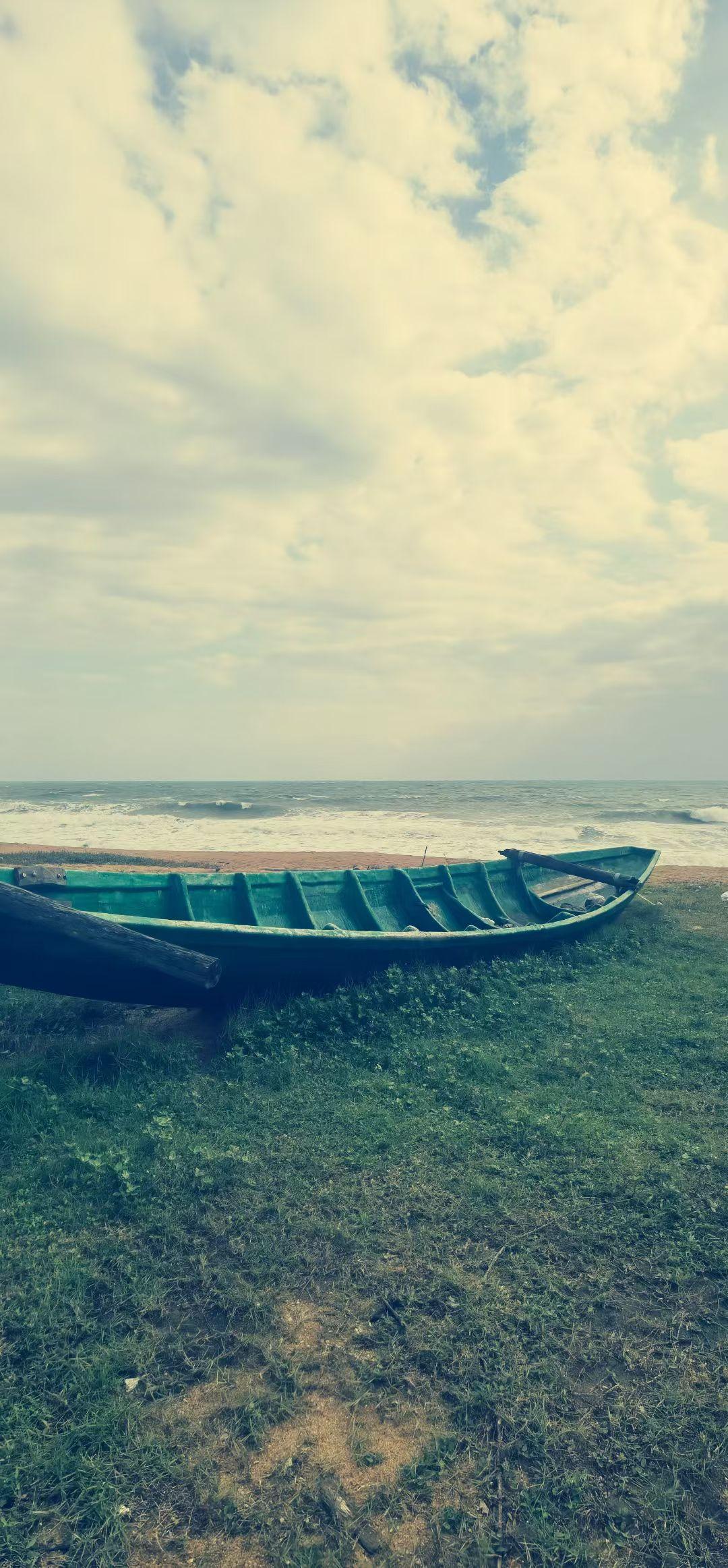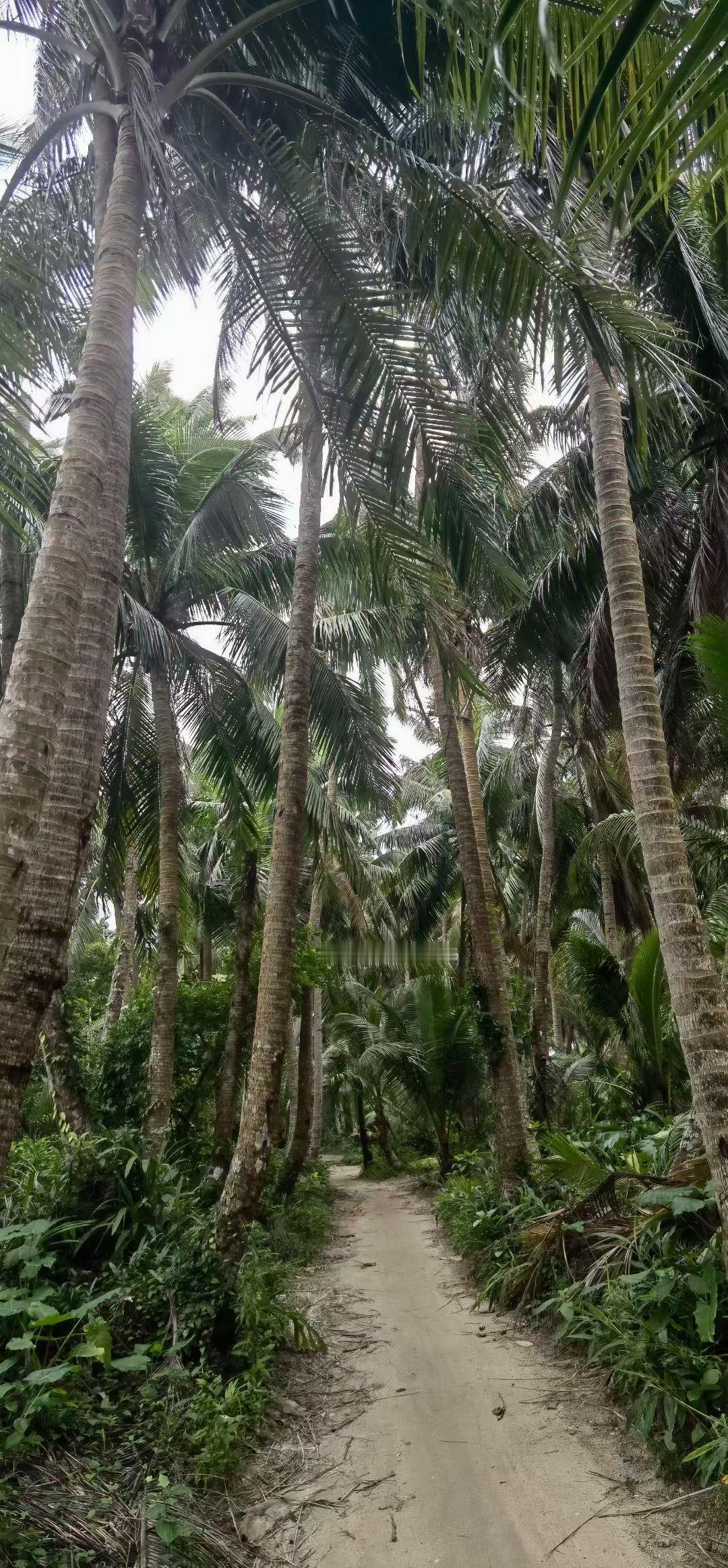 在椰林的缝隙里撞见海的呼吸 沙粒裹着浪声,小船枕着云影 渔绳牵着潮汐,溪流揉碎绿意 这趟山海的相遇,每帧都是刚好的松弛沙滩上的小舟 椰林海边风景 闻着海的气息