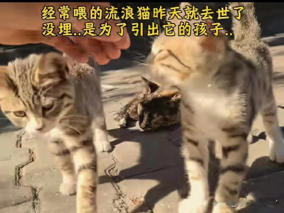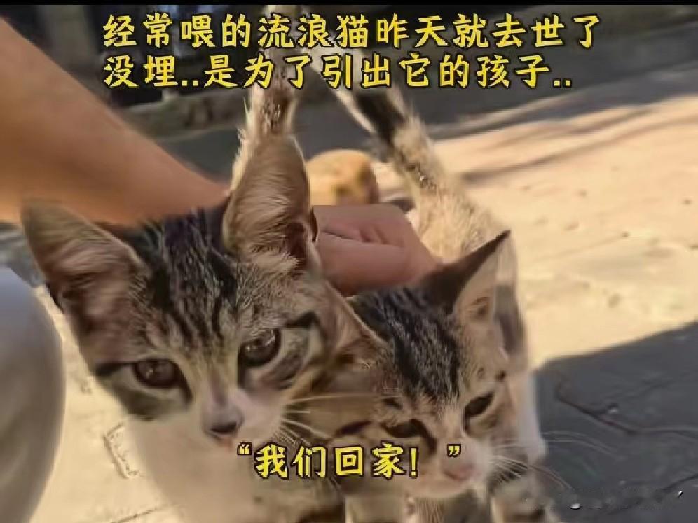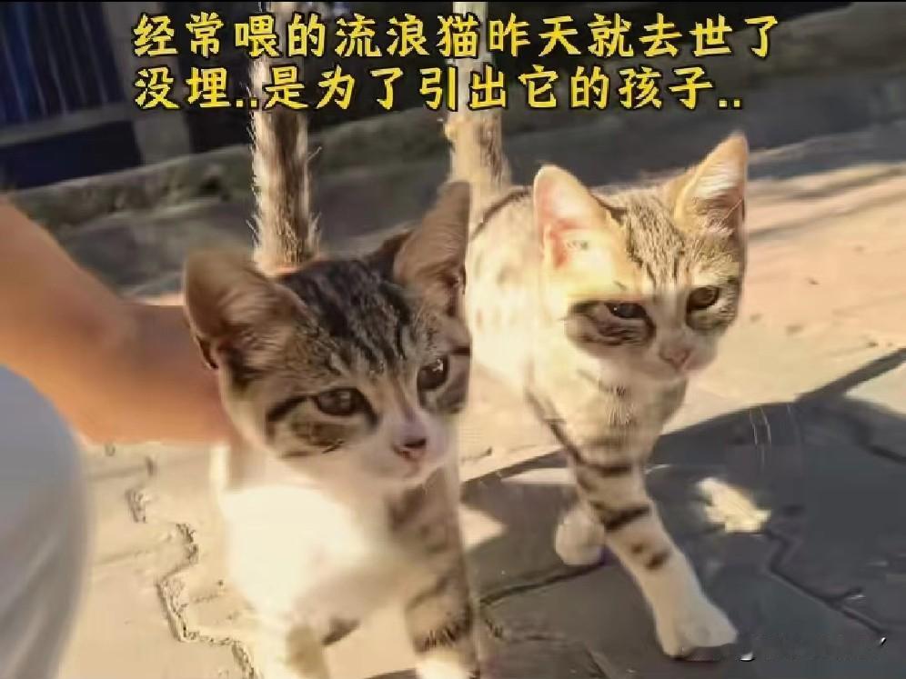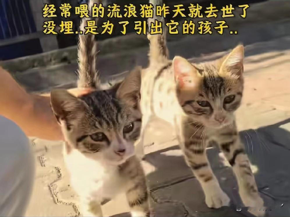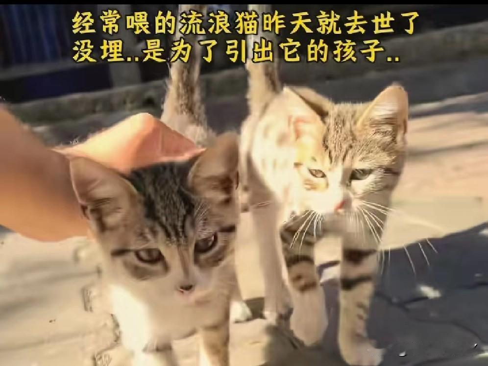 常被投喂的流浪猫妈妈昨日永远地睡去了,深爱它的女子不舍得把它掩埋,只为等它那两个还没露面的孩子。 砖石路上,猫妈妈静静地躺着,两只小奶猫,一个蔫蔫地趴着、一个没精打采地坐着,眼神里满是茫然。 女子见此情景,心疼不已,轻声呼唤着它们,认识她的小猫先是怯生生地凑了过来,另一只也缓缓靠近。 她轻轻抚摸着小猫的头,说道:“走,我们回家,以后我会保护你们。” 每一个流浪的生命都藏着不为人知的温柔,愿这两只小奶猫从此有个遮风挡雨的港湾,也愿所有漂泊的毛孩子,都能遇到这样的“心软神”。