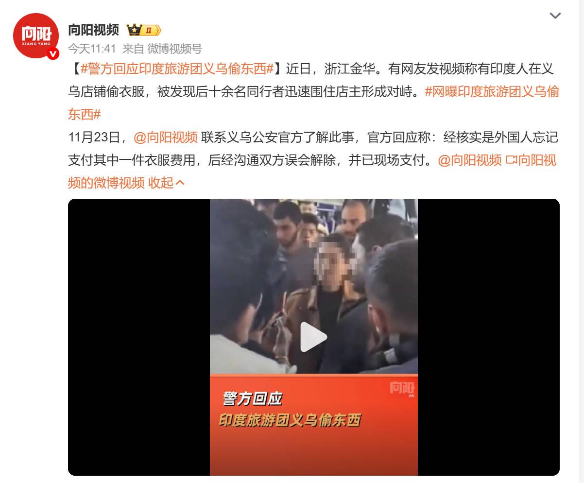 警方回应印度旅游团义乌偷东西:不是偷是忘记支付