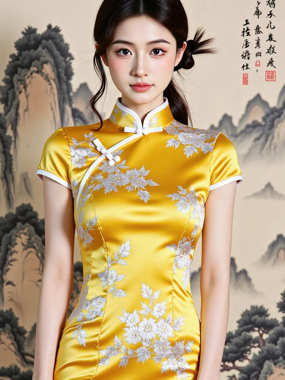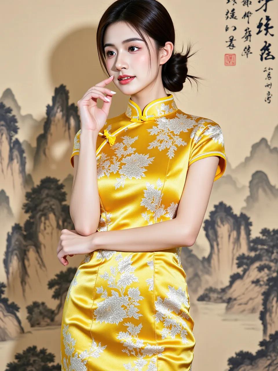 锦缎裁春,牡丹着绣。画中山水化作裙裾上的江山,美人一颦一笑皆是千年风雅的注脚。旗袍旗袍美人