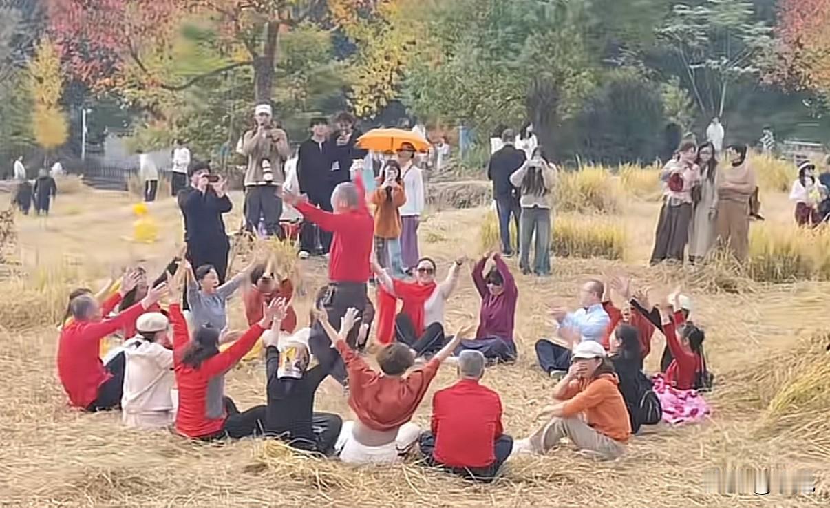 大爷大妈们在尚未收割的稻田里,激情澎湃、放飞自我,你们对些事怎么看?