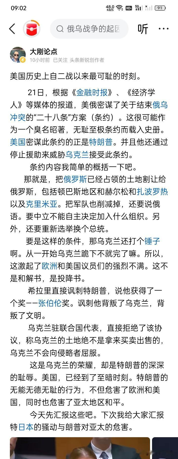 可耻不可耻?但尽想美事! 那个美丽国现在好像不想为乌克兰的战争进程掏一分钱进行援助,甚至是还想借乌克兰的战争大赚一笔丰厚的利润,却偏偏要幻想主导乌克兰战争的事务,天下有这等好事? 实际上,这就像踩翘板,或者拨河比宽,不站在这边就站在那边,想做到鱼和熊掌通吃的事情,似乎根本就没有可能性。结果很可能似乎就是,不仅仅是将名誉毁于一旦,估计还将摧毁自己的执政基础。 公平正义大概是大多数人的思维逻辑基础,离开了这个基础,任何人、任何政党,似乎都将可能被抛弃,估计最多就是时间长短的问题。