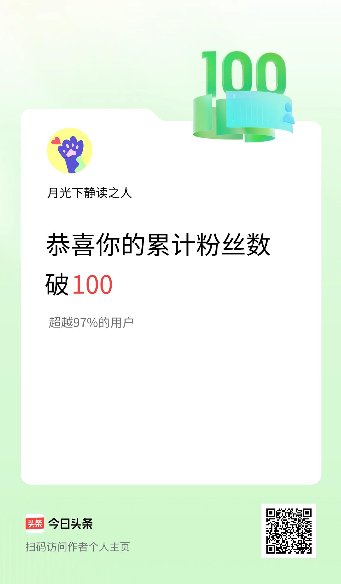 我在头条累计粉丝数破100啦!
