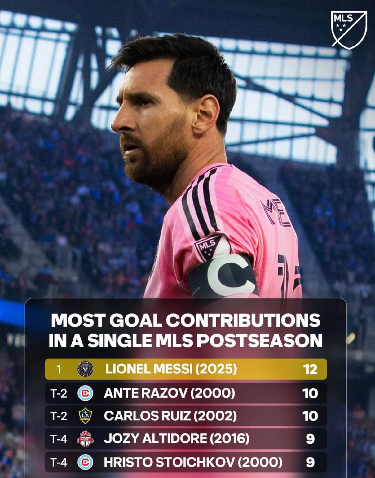 莱昂内尔·梅西成为单届季后赛进球贡献最多的球员🐐🔝