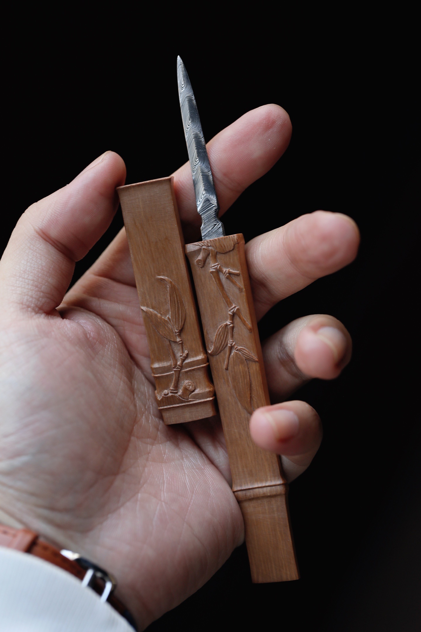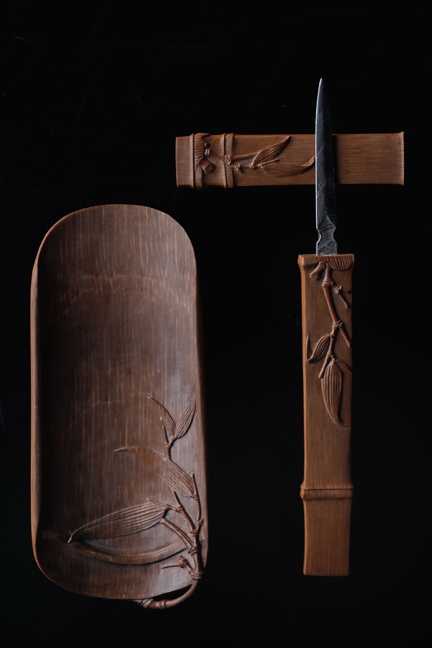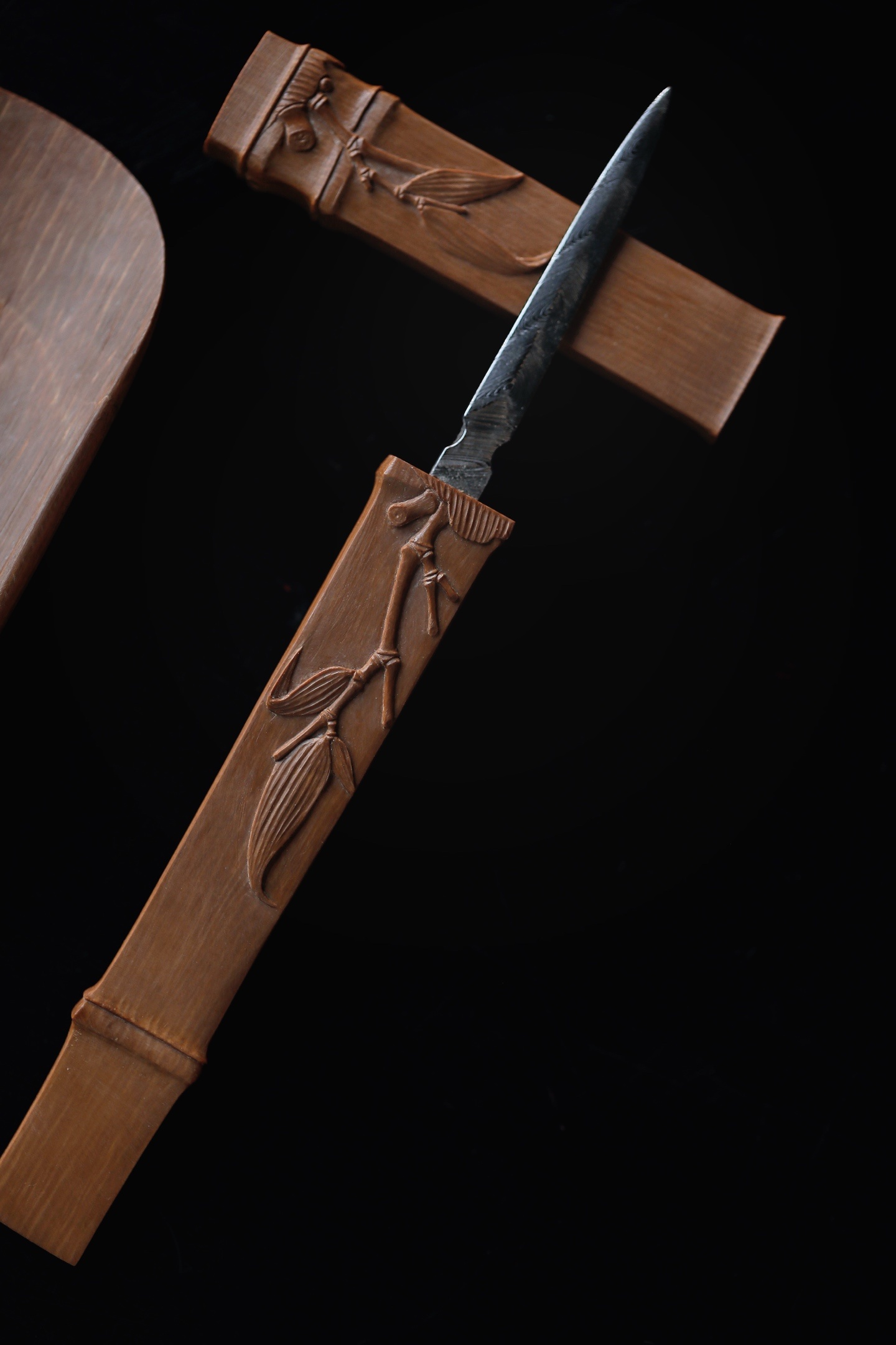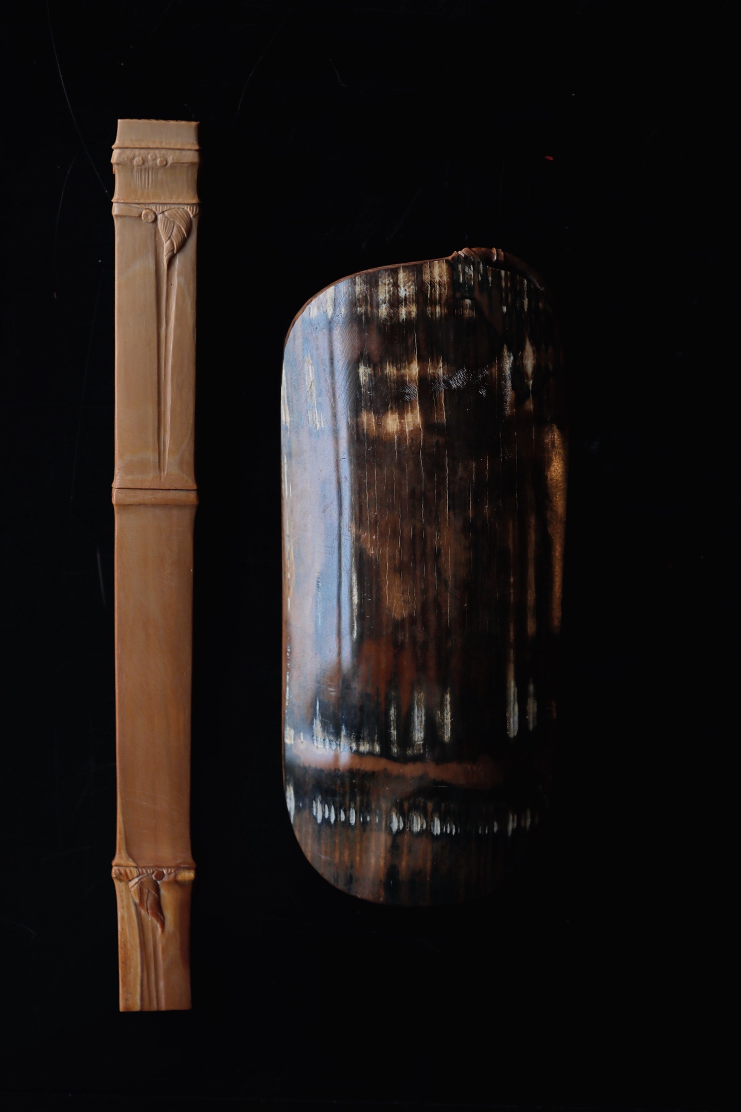 猛犸咖料 | 竹境 茶则两件套整料清刀雕刻,饰以两三片枝叶,仿生自然。形象惟妙惟肖,造型生动。以谐音寓意,知足常乐之意,收藏把玩,辅以茶事,陶冶心境。茶针:17.7cm 41g茶则:13*5.8*1cm 38g