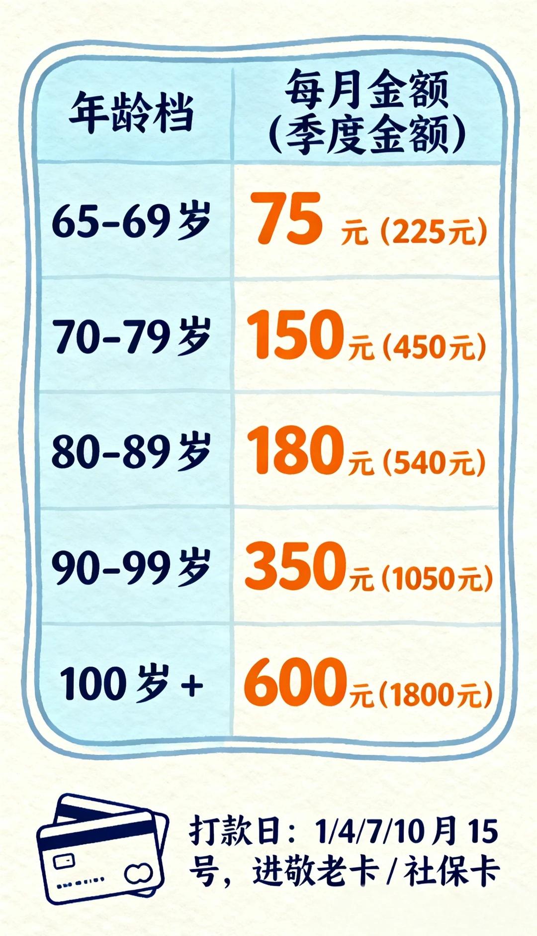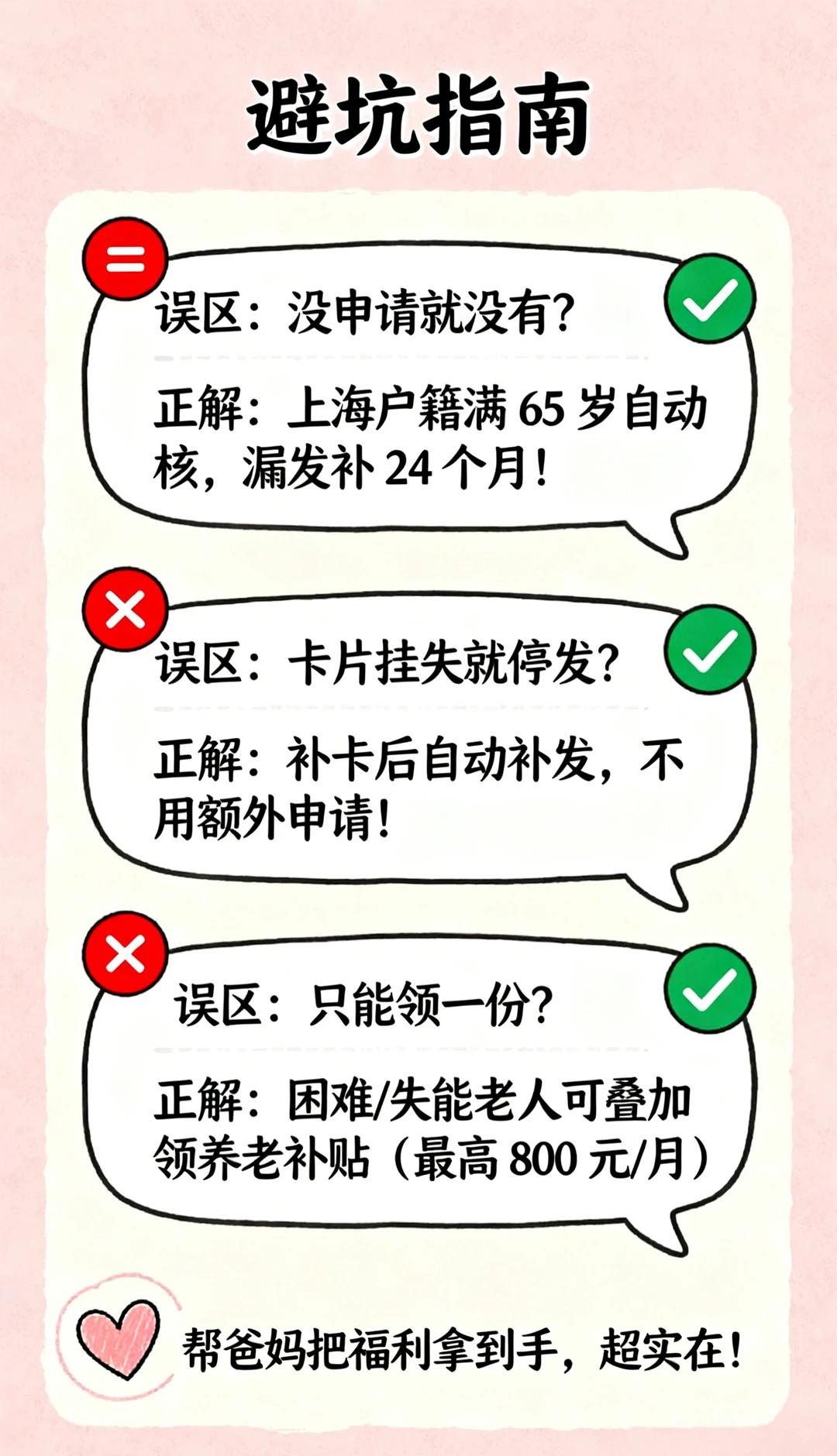 上海子女必看!帮爸妈领高龄津贴 上海子女必看!帮爸妈领高龄津贴,这 3 步就够了✨ 上周刚帮我妈确认完津贴到账,发现好多子女还不知道怎么操作!其实超简单,不用跑社区,手机 5 分钟搞定,附详细步骤和避坑指南👇 1️⃣ 先查爸妈能领多少钱(分档清晰版) 不用算!对照年龄直接看: [一]65-69 岁:每月 75 元(每季度打 225 元) [二]70-79 岁:每月 150 元(每季度打 450 元) [三]80-89 岁:每月 180 元(每季度打 540 元) [四]90-99 岁:每月 350 元(每季度打 1050 元) [五]100 岁 +:每月 600 元(每季度打 1800 元) 👉 划重点:打款日是 1/4/7/10 月 15 号,直接进爸妈的敬老卡 / 社保卡,到账会有短信提醒(没绑手机号的先去银行绑!) 2️⃣ 子女代查 3 步走(附截图指引思路) 用爸妈的手机或帮爸妈登录 “随申办”: ① 打开随申办 APP / 微信小程序,搜索 “老年综合津贴” ② 点 “津贴查询”,输入爸妈身份证号(或刷脸验证) ③ 就能看到 “发放状态”“到账金额”“绑定银行卡”—— 没绑定的直接在这选敬老卡 / 社保卡,不用跑社区! 3️⃣ 这些坑别踩(子女最常问的 3 个问题) ❌ 以为 “没申请就没有”?错!上海户籍满 65 岁系统自动核,漏发的能补 24 个月(比如爸妈 67 岁才知道,能补前 2 年的!) ❌ 卡片挂失了就停发?不会!补卡后系统自动补发停发的钱,不用额外申请 ❌ 只能领一份?不一定!经济困难 / 失能的老人,还能叠加领 “养老服务补贴”(最高 800 元 / 月),在随申办搜 “养老服务补贴” 就能查资格 我妈拿到津贴当天就去买了爱吃的水果,说 “政府记着我们老人呢”~ 其实对子女来说,帮爸妈把该得的福利拿到手,比啥都实在! 家里有上海户籍长辈的,今晚就帮他们查一查~ 预习变老 重新养爸妈一遍 关注老人健康 老年人安全 中老年人群 老年人陪伴