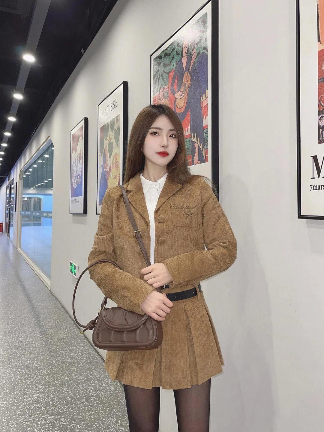 复古风穿搭,棕色外套配短裙,时尚又优雅!