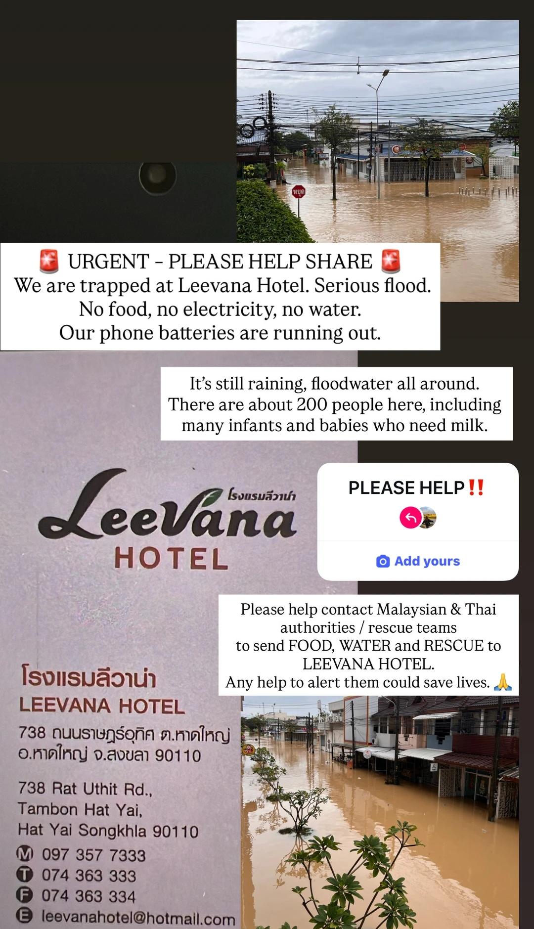 求助‼️ Hatyai水灾受困🙏🏻 我们这里很多小孩需要牛奶及尿布 非常需要 已经彻底断电断水 手机也快没电了 用着所剩无几的电源发求助贴 至今完全没人来送食物送水 这里有大概150人左右[皱眉] 麻烦大家帮帮忙 传出去 很多小孩子家庭都困在这里... 如果能帮忙联系救助队的 我们万分感激🙏🏻 洪水 水灾 求救 sos 救助 灾难 帮忙