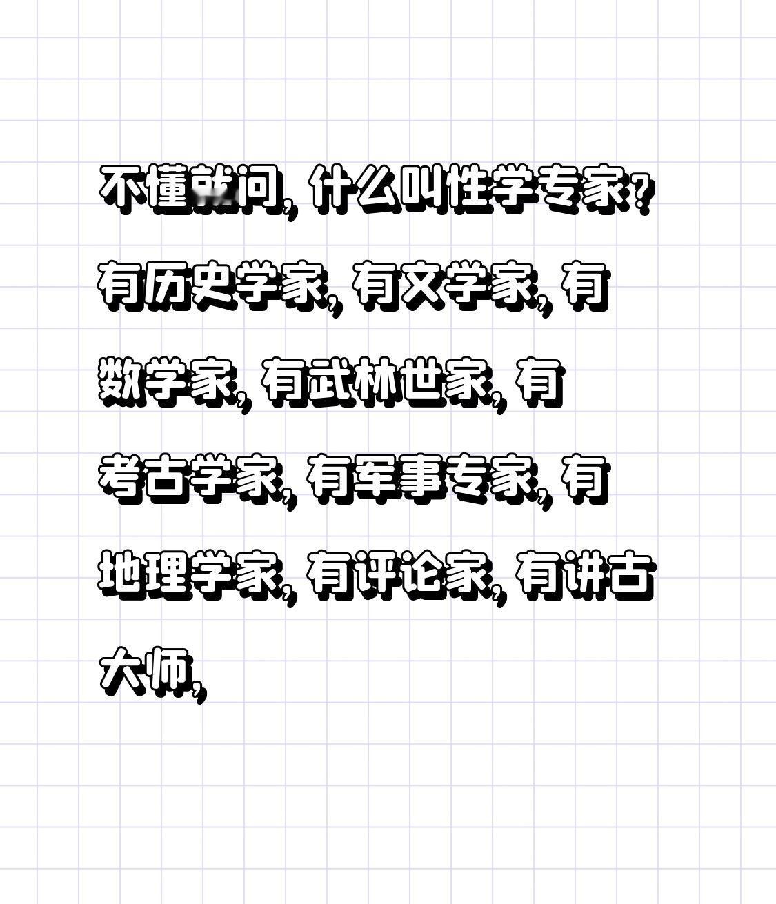 不懂就问,究竟什么是性学专家? 世间有历史学家、文学家、数学家,也有武林世家、考古学家、军事专家、地理学家、评论家、讲古大师、航海家。 这性学专家,性这方面究竟有什么值得研究的呢? 性学专家到底是怎么回事? 有谁能懂?