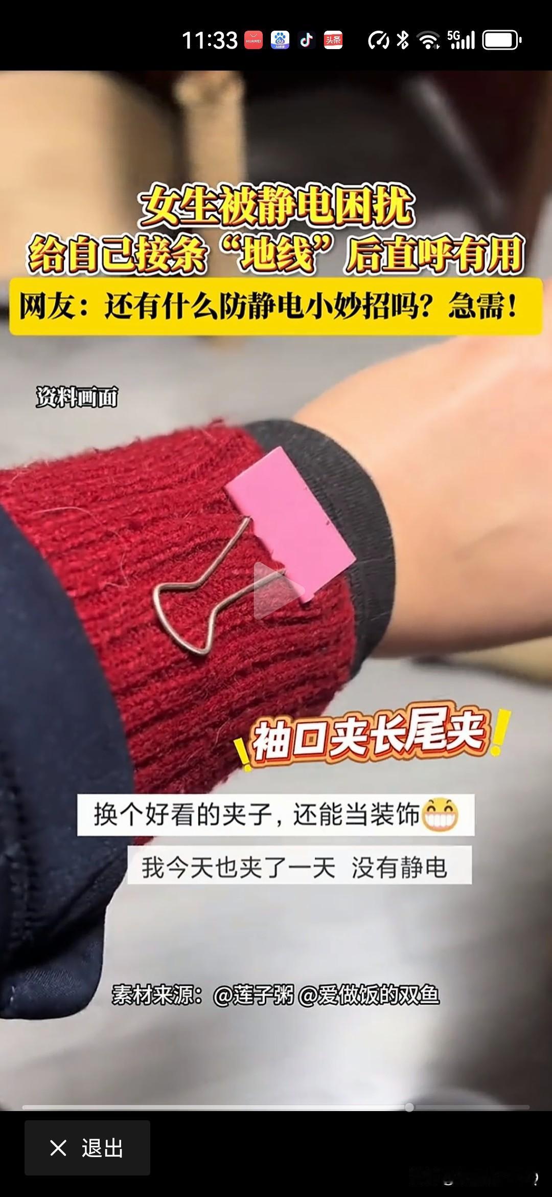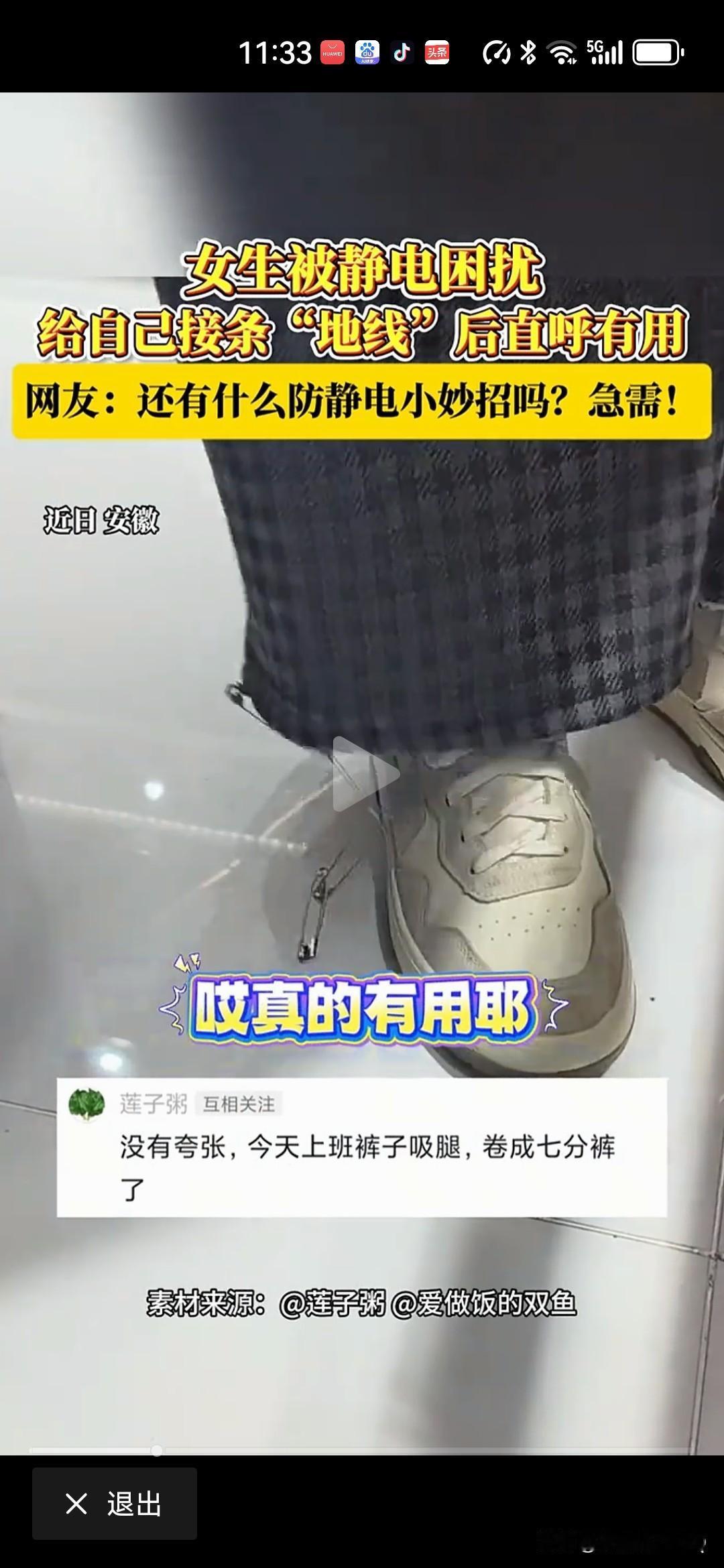 如何让女生有触电的感觉?女生被静电困扰给自己接条“地线”!冬天天气干燥,晚上上厕所,触摸一下不锈钢门把柄就好像被电电一下,非常糟糕感觉!而这个女生身体也带静电,象她一样从裙子下面安装一条地线,将静电带走,这样就有安全感,不错的创意!但男女之间也有触电的一见钟情吧?就是一看就对上眼的静电,所以感情的感觉或者也是静电造成的喜欢!