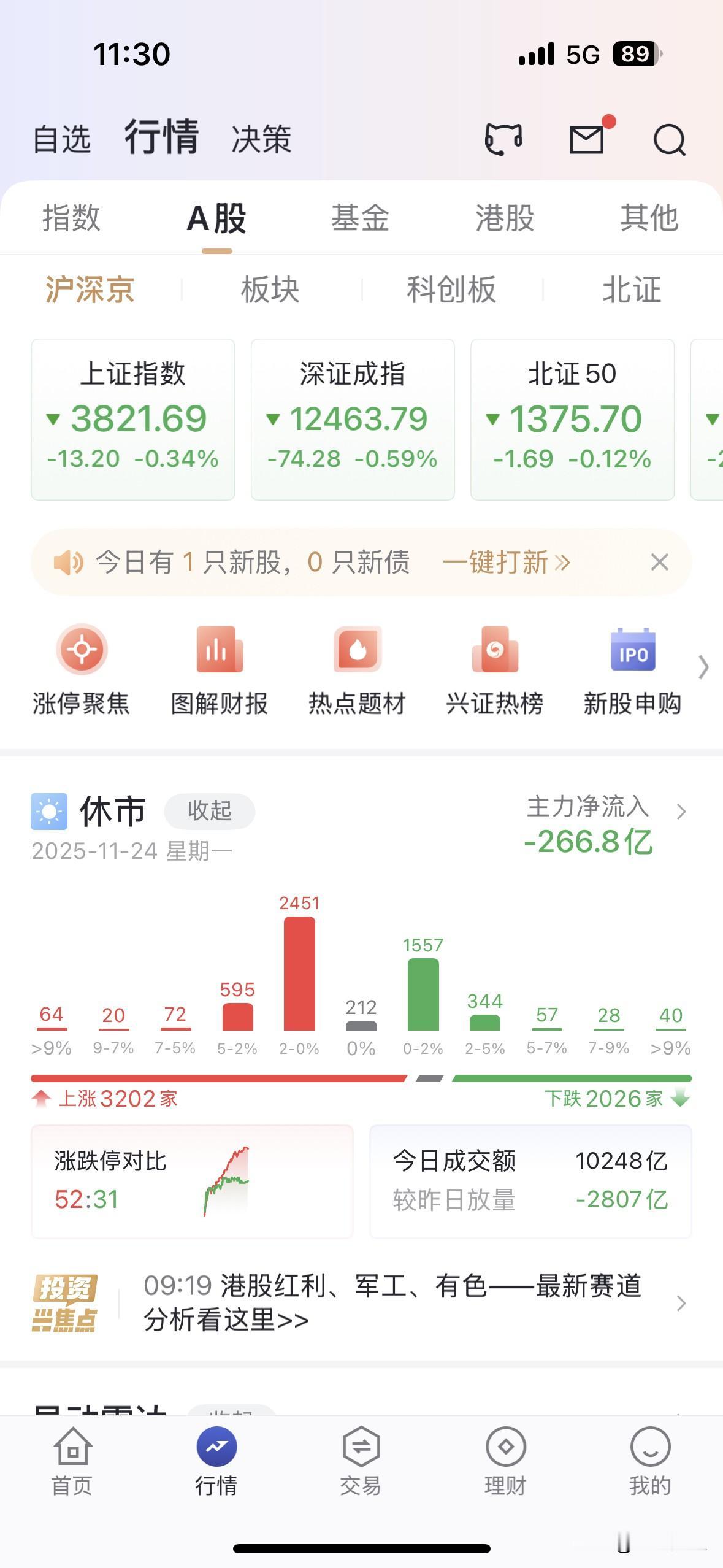 早盘高开后的A股,连续下跌,似乎止不住的样子,大有将多头打爆的感觉,较上一交易日成交额大幅减少近3000亿元,1万亿出头,与港股走势大相径庭。 目前的成交金额显然不足以支撑A股止跌回升。 但连续的缩量下跌也在酝酿着反弹,按4034点计算,回调已超200点,幅度在5%以上,个人判断应该会有一个100点左右的反抽。 A股市场的向上走势不会止步4000点,这是各方的共识,目前的连续缩量回调,不必太过纠结,也仅是回调而已。 乐呀财经