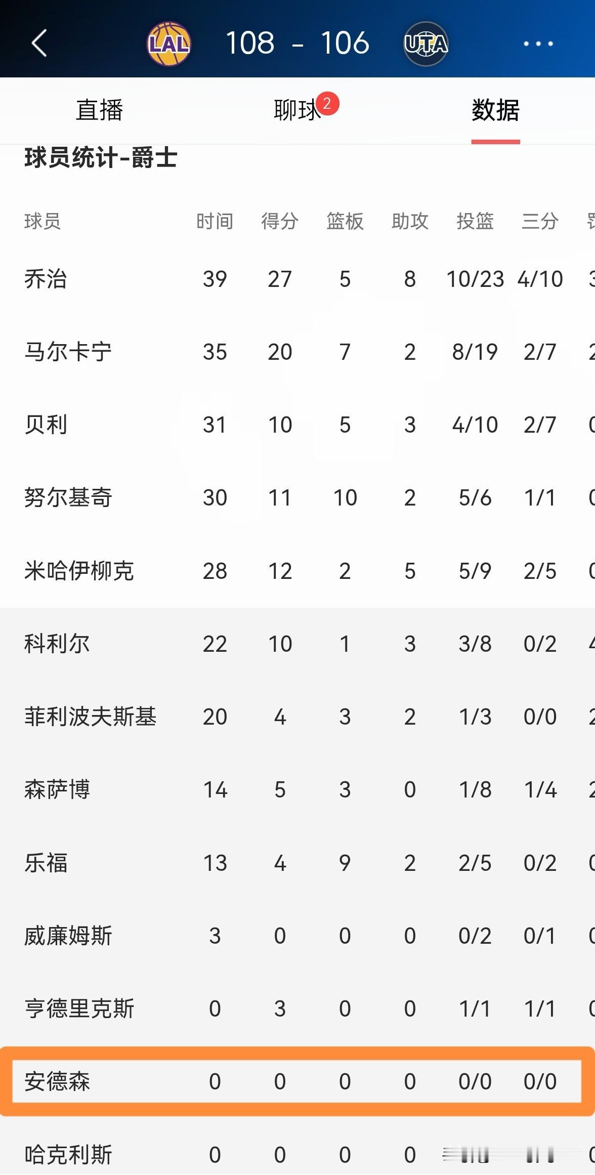 爵士大将李凯尔真是太憋屈了!在今天爵士主场以106:108惜败于湖人的比赛中,李凯尔坐了一整场的冷板凳,他没有获得任何的出场机会,只能在替补席上为队友加油助威。 坦白说,如果此役李凯尔能够获得15分钟的上场时间,那么爵士完全有机会在主场击败湖人,但是爵士主帅哈迪完全弃用了李凯尔。作为一名攻防能力不俗的球员,如今李凯尔在爵士的境遇真是让人唏嘘不已。