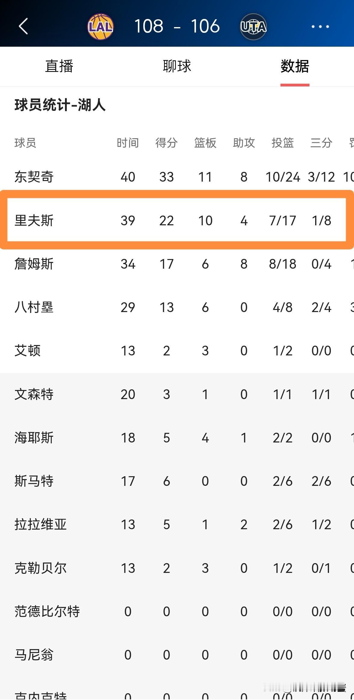 湖人超级球星里弗斯绝对是当今NBA最强三当家!在今天湖人客场以108:106击败爵士的比赛中,里弗斯首发出战39分钟,投篮17中7,其中三分球8中1、罚球8中7得到22分10篮板4助攻1抢断。 作为当今联盟最出色的得分手之一,里弗斯堪称NBA最强三当家。