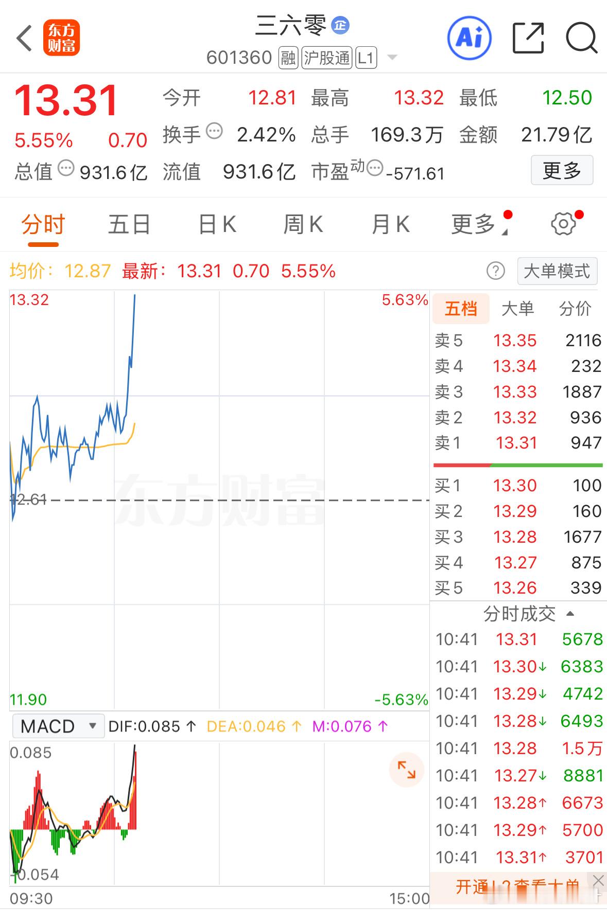 不负众望,三六零拉升5个多点,大家点赞支持吧