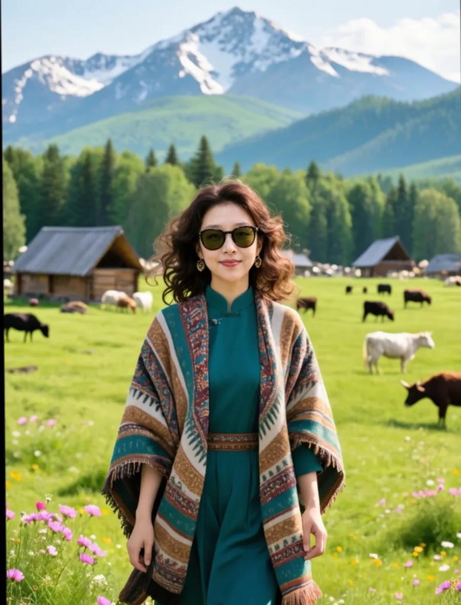 草原上的时尚女郎,享受自然与时尚的完美融合。