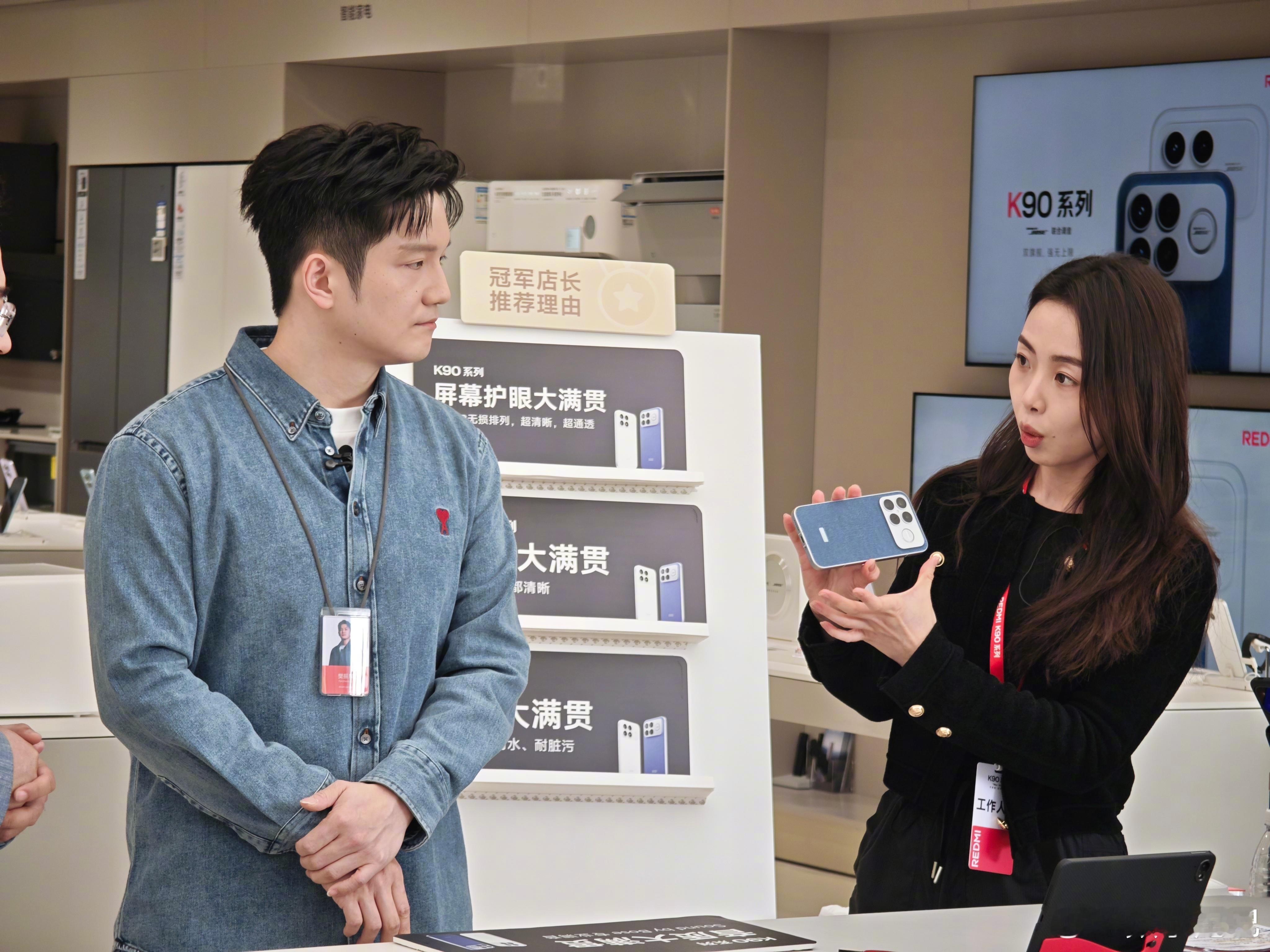 哈哈哈 樊振东现场给K90机主交付新机 还包现场贴膜看这手艺不像没贴过的