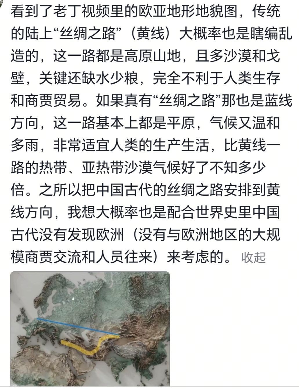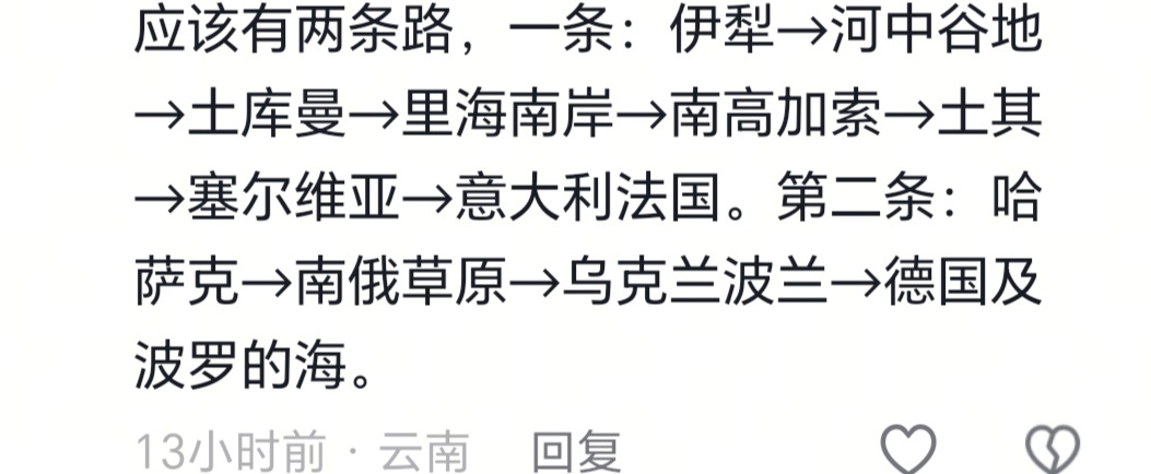 网友关于陆上丝绸之路疑问北方平原路线直达欧洲,咋就没直接联通呢?毕竟游牧群体都能东西畅通无阻。现在大家受到了老丁启发,都开始重新思考那些不合逻辑的地方。
