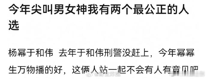 今年爱奇艺尖叫男女神两个最公正的人选:杨幂、于和伟。