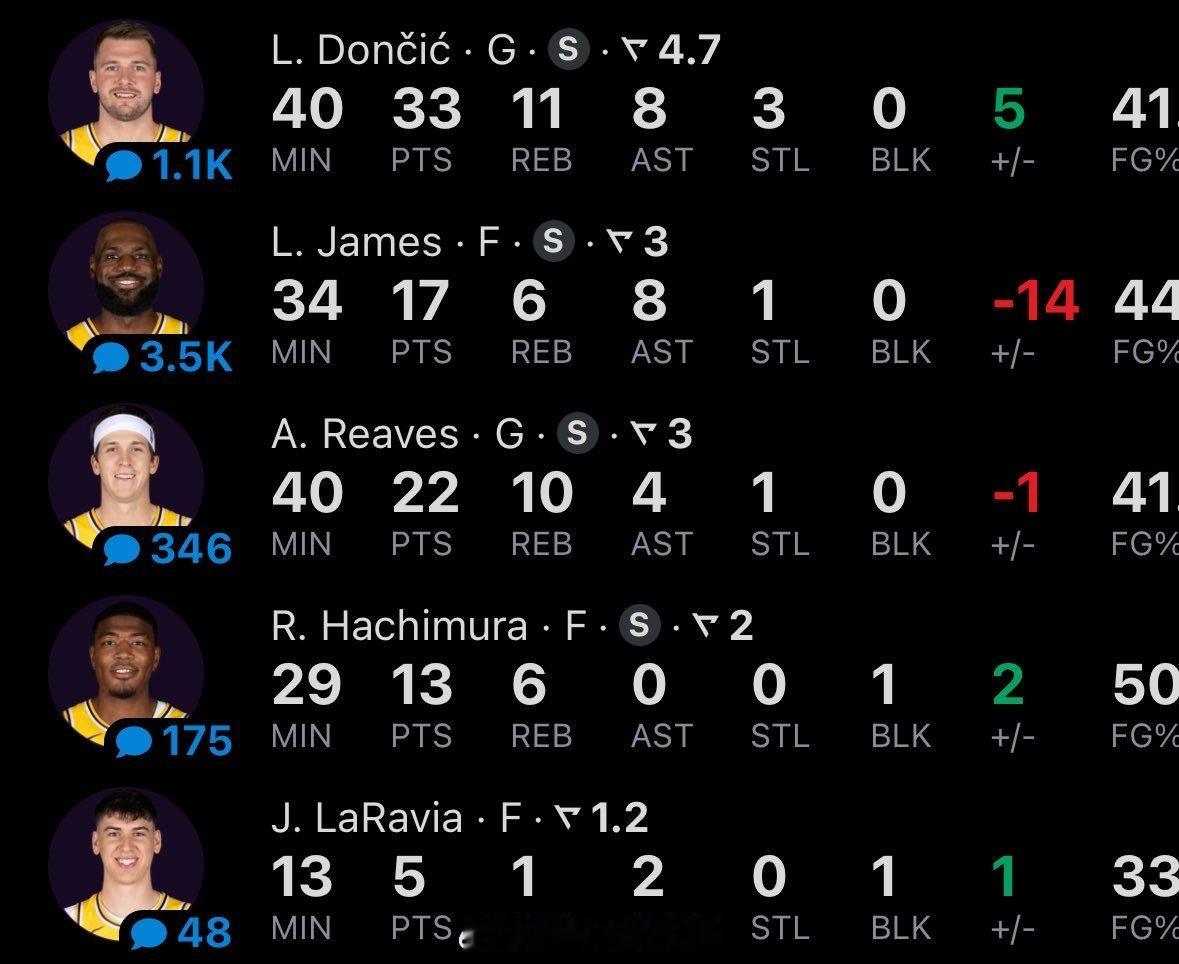 詹姆斯正负值-14,不仅是全队最低,也是全场倒数第二…
