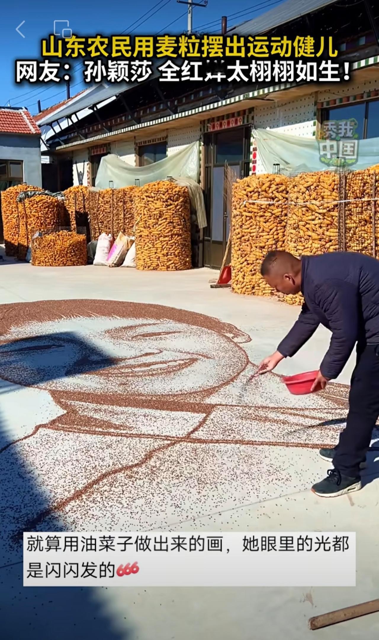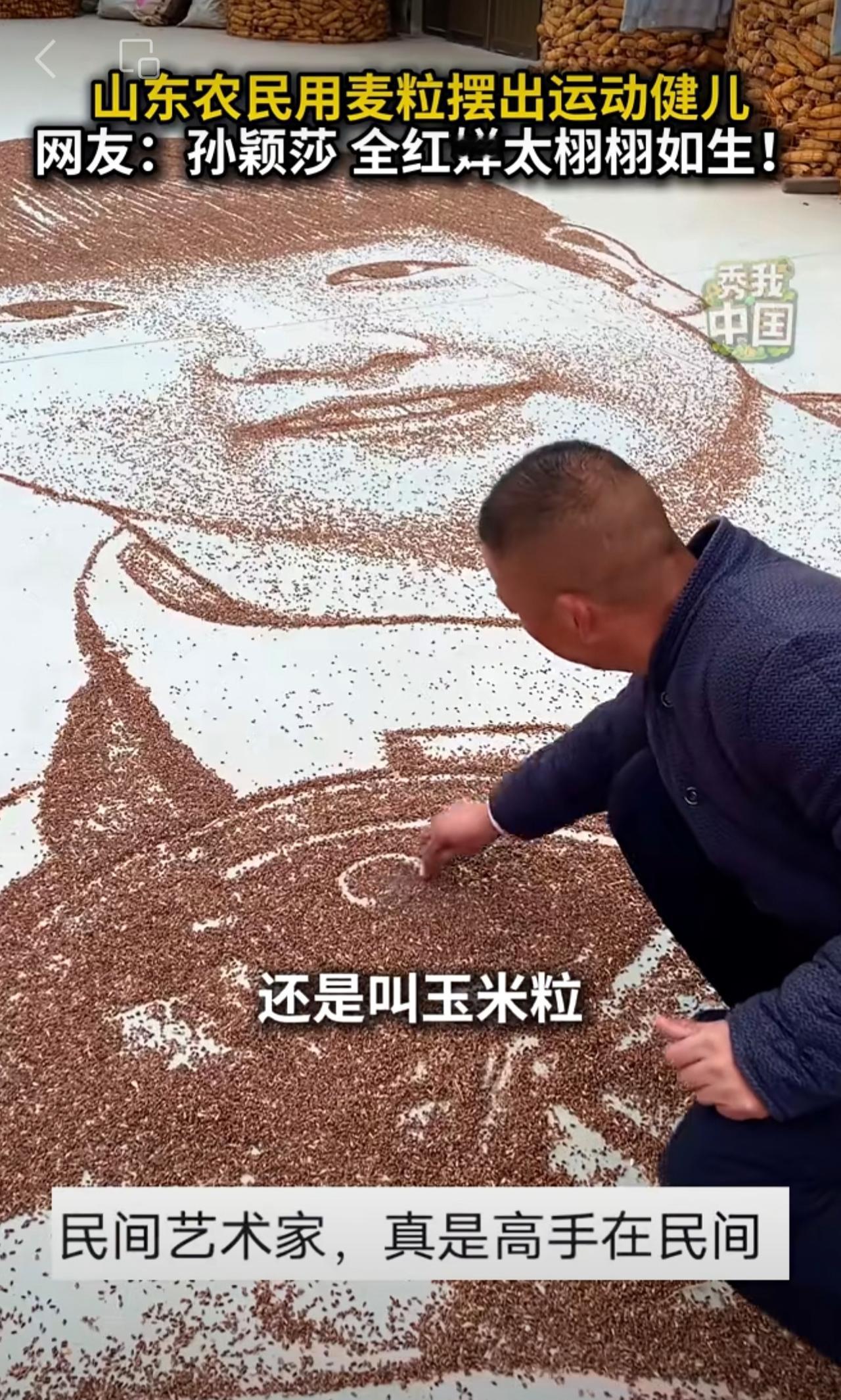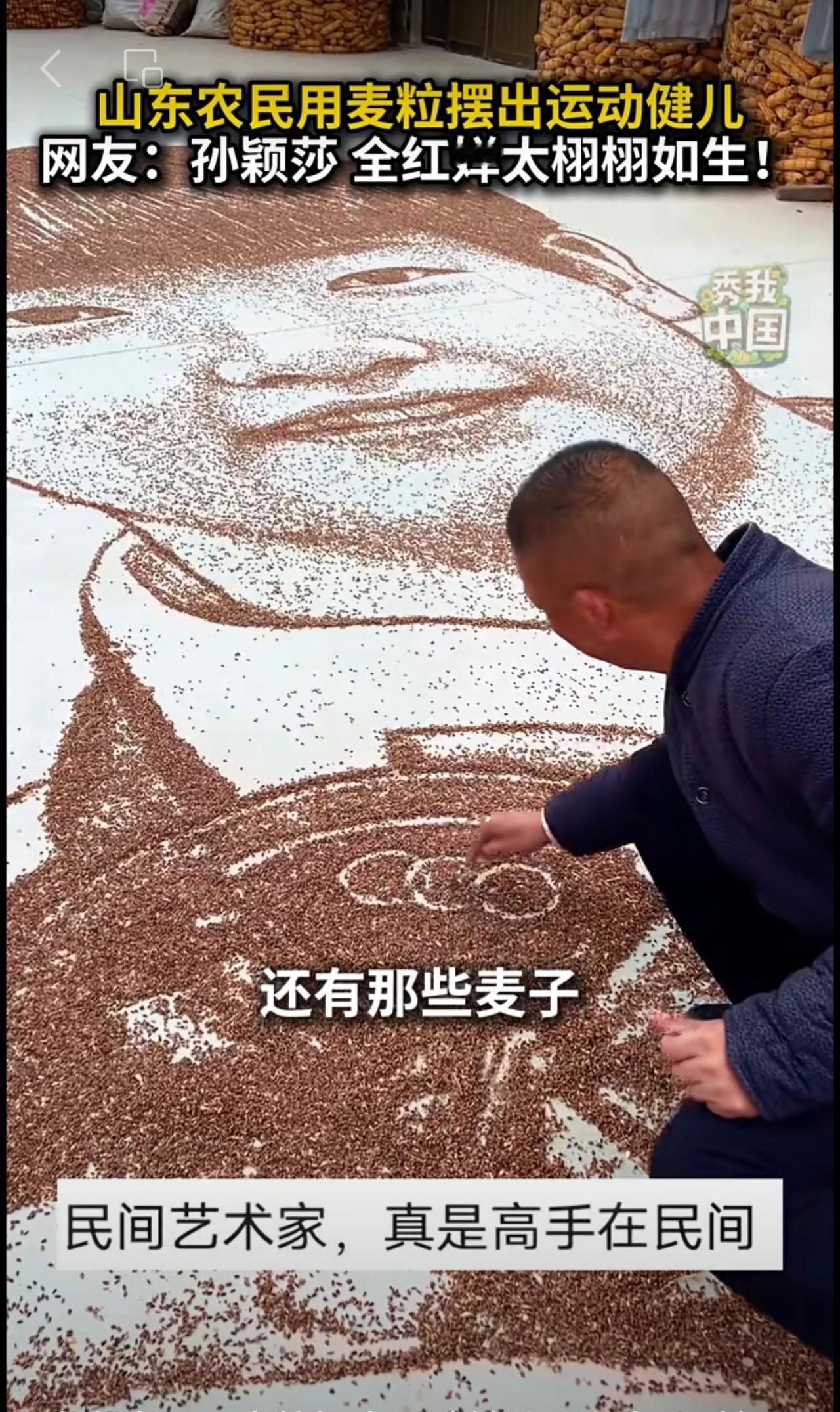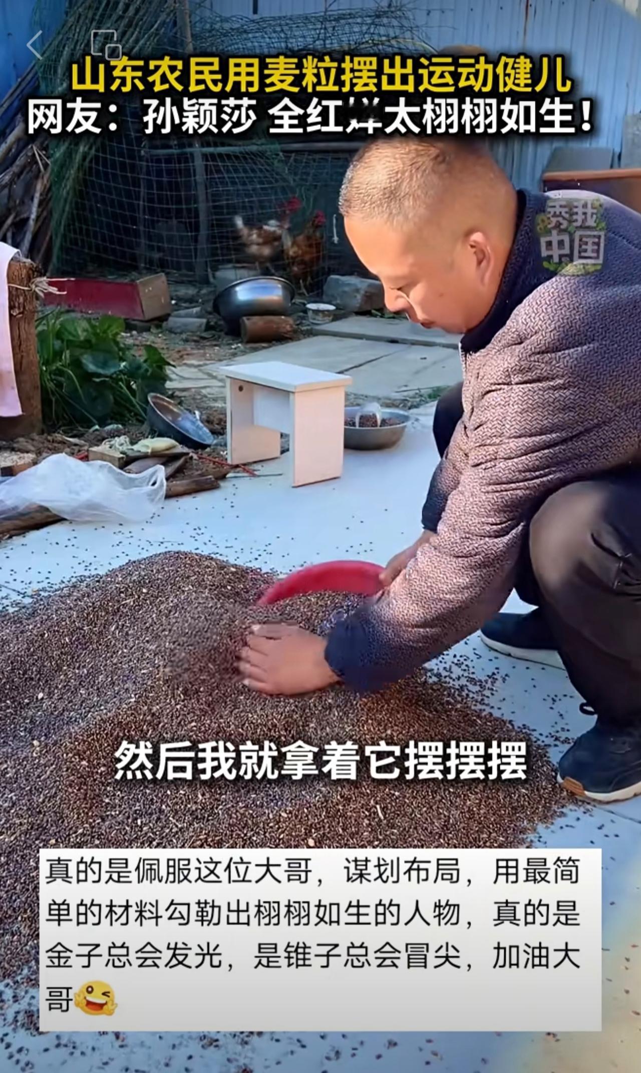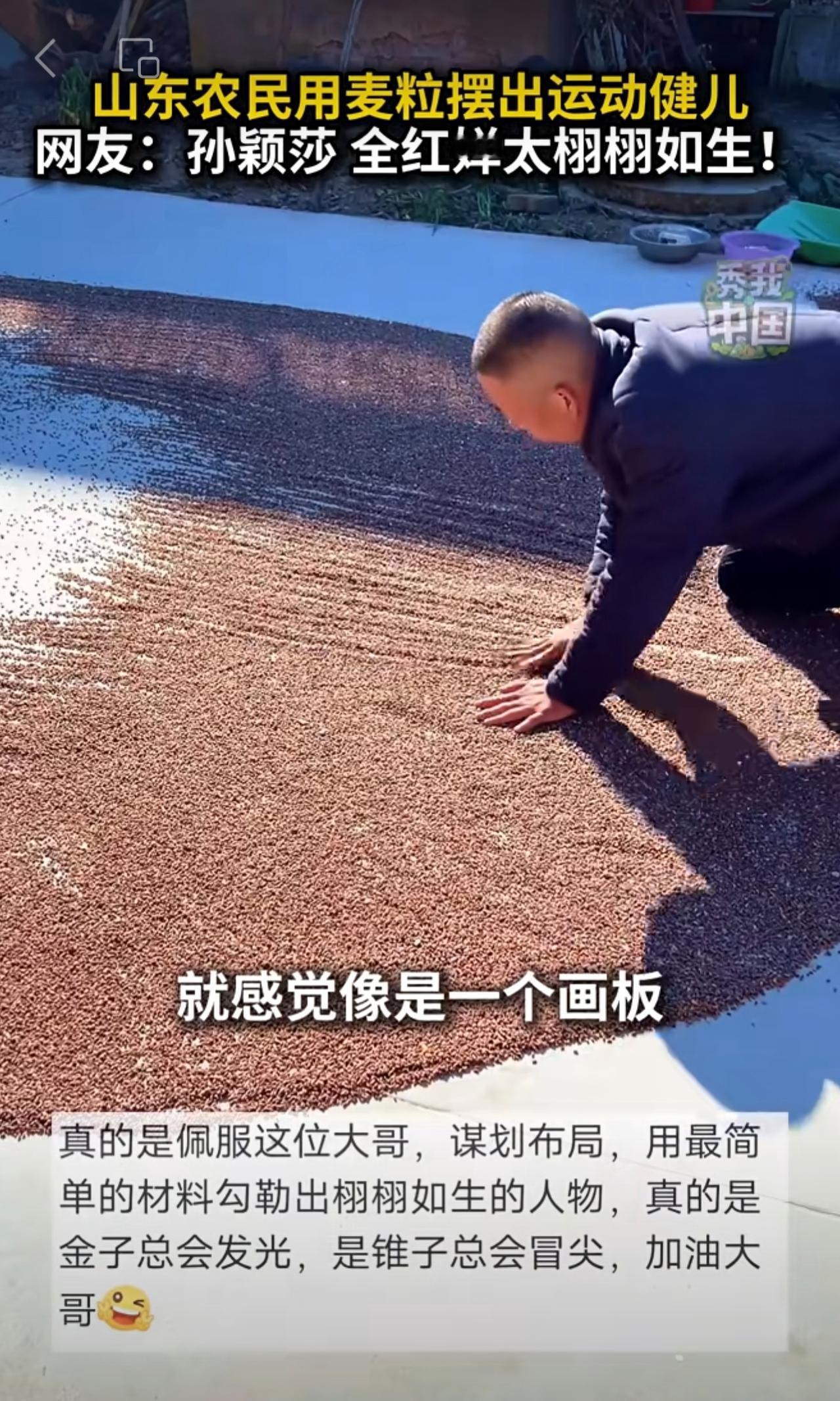 山东农民用麦粒摆出运动健儿,网友:孙颖莎、全红婵也太栩栩如生!