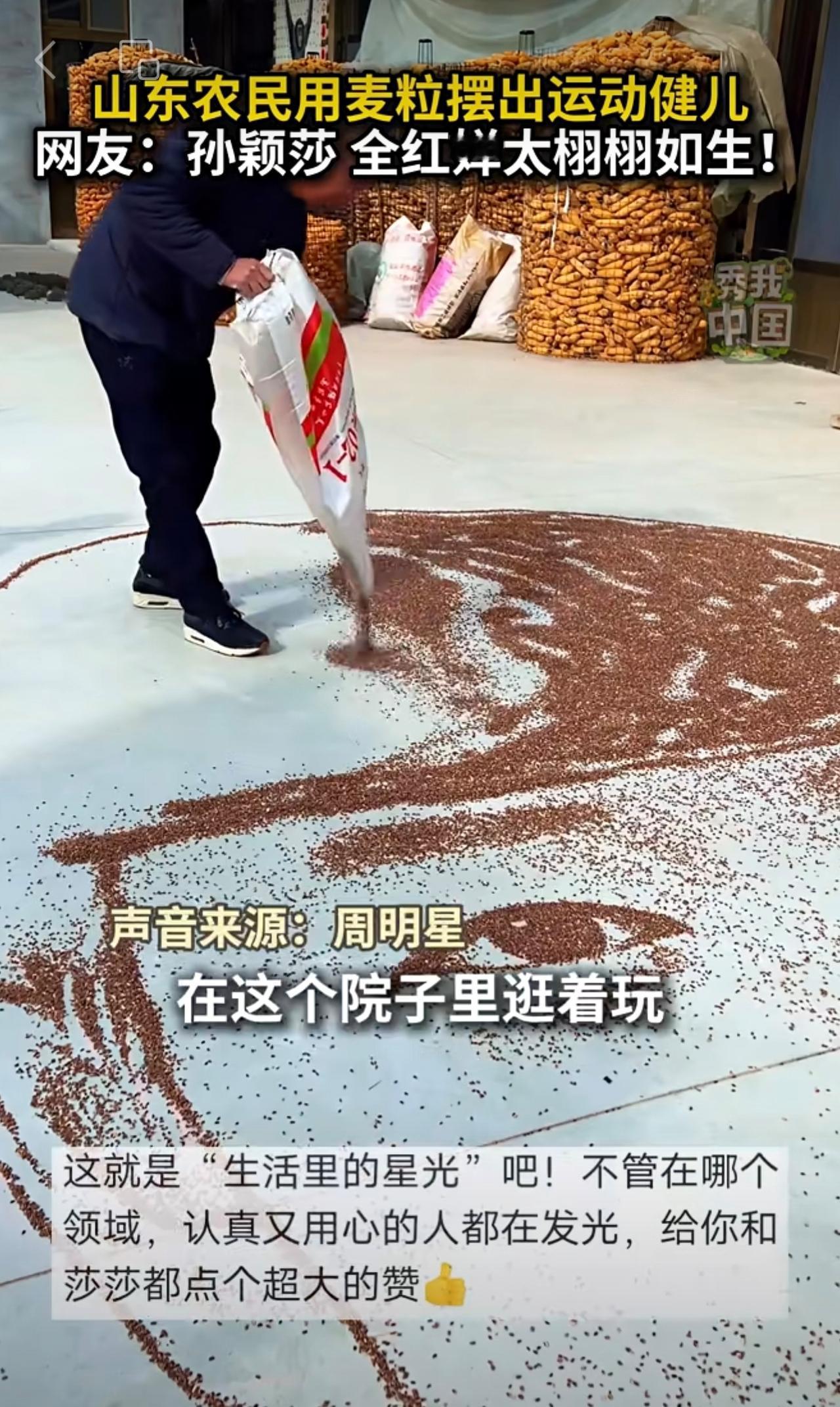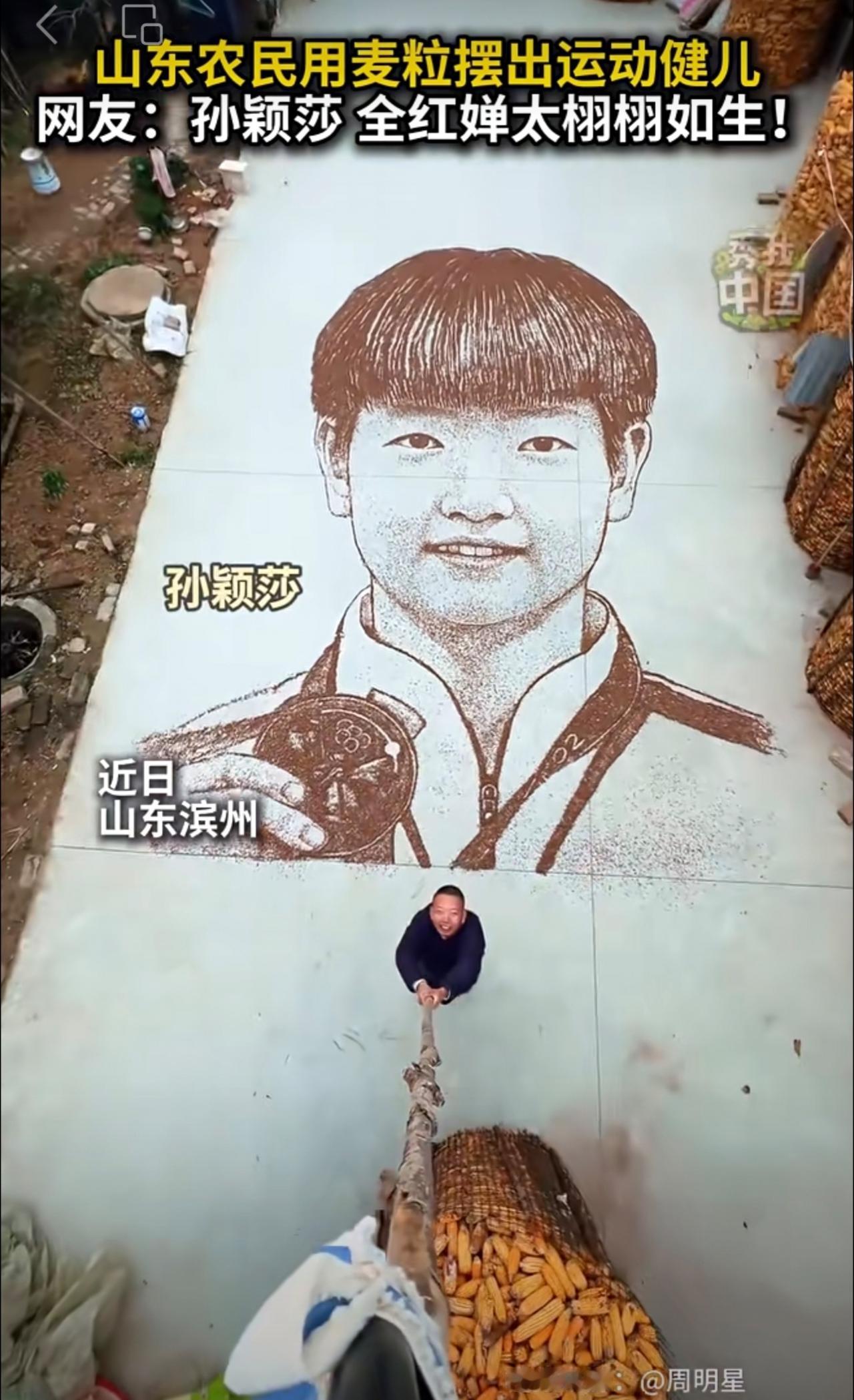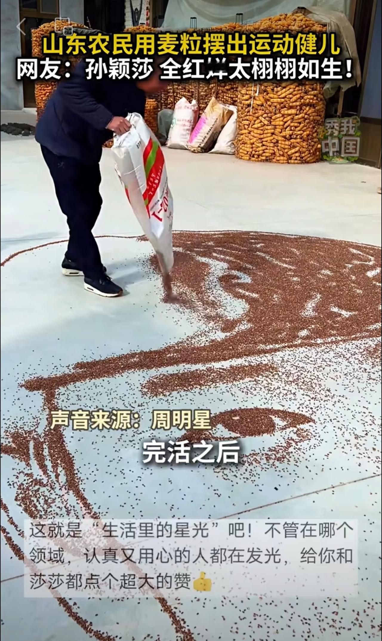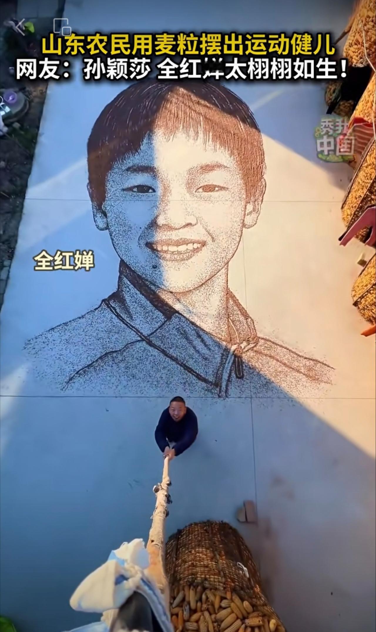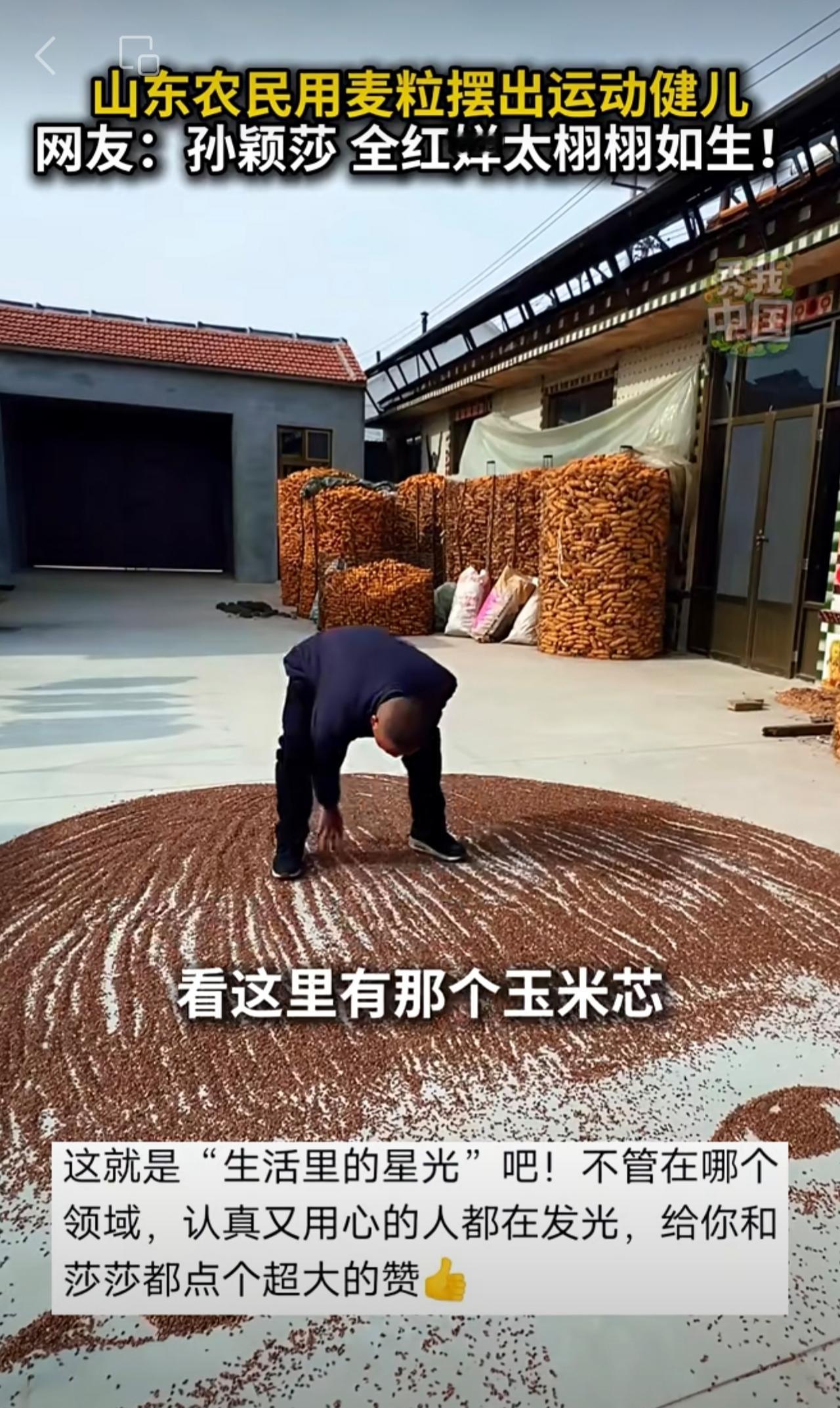山东农民用麦粒摆出运动健儿,网友:孙颖莎、全红婵也太栩栩如生!