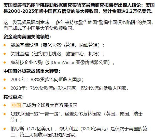 俄罗斯媒体的报道,标题:美国是中国21世纪最大的贷款接收国。 俄媒发出感慨,发达国家向中国借贷,中国在全球经济中的角色发生转变。