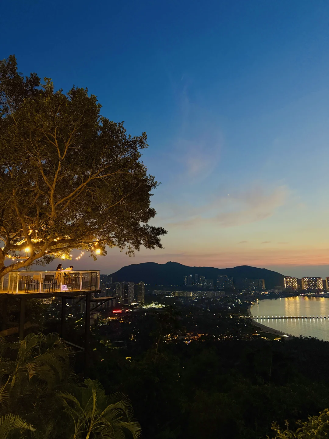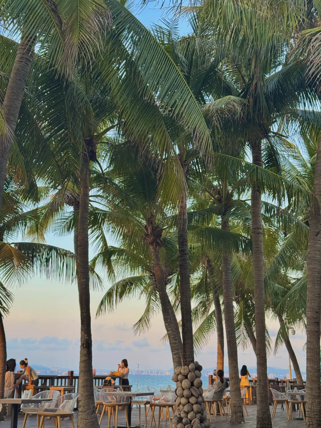 上午可以去小东海赶海(看好潮汐表),下午去大东海找个下午茶喝咖啡,我去过的几家:圈圈子(窗景)一尺花园(躺着看海)ipk(沙滩吧,晚上氛围不错)、lan餐吧都离得很近,随便找个自己喜欢的,那边也有水上项目可以玩,四五点去鹿回头,不要门票,不想爬山可以做景交车上去看日落,蓝调的时候真的美哭了~