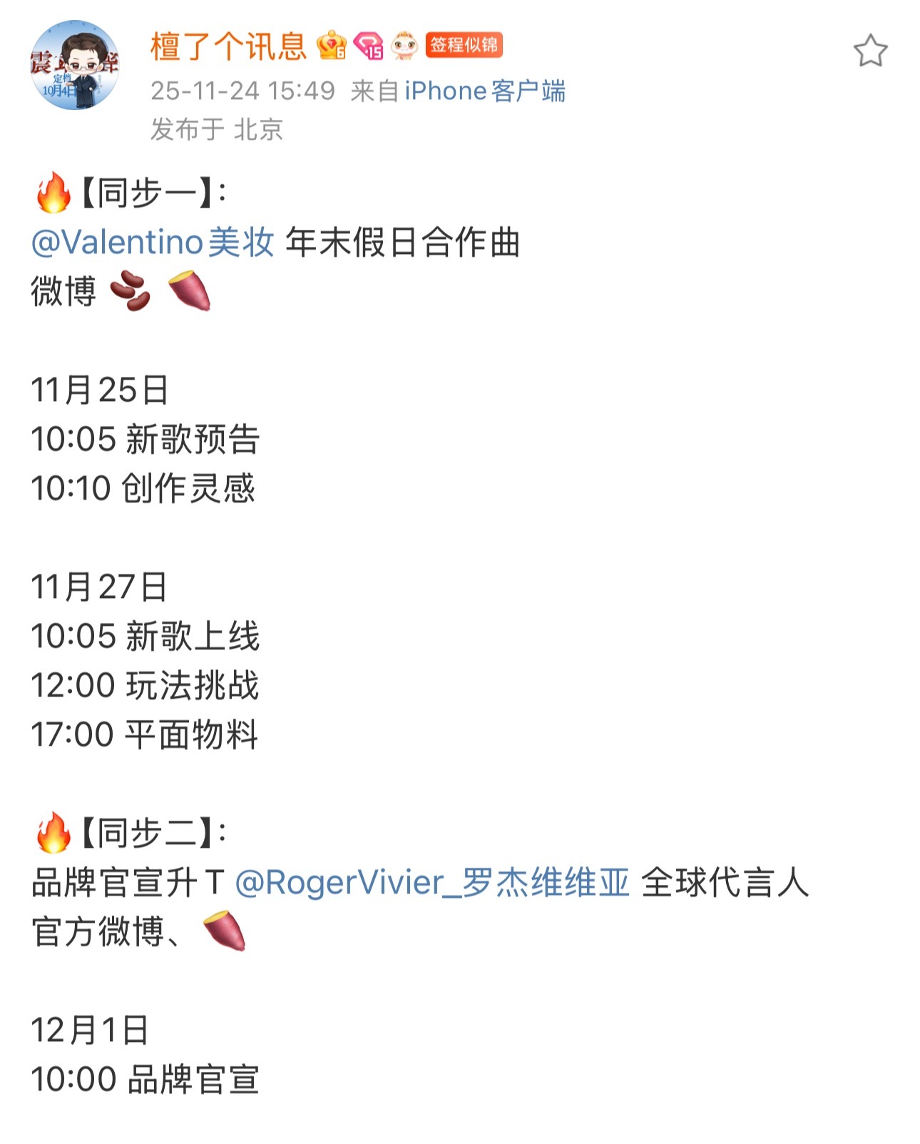 哎呀呀,好消息来了,不仅要升RV全球代言人了,还和华伦天奴合作了一首新歌🥰🥰🥰