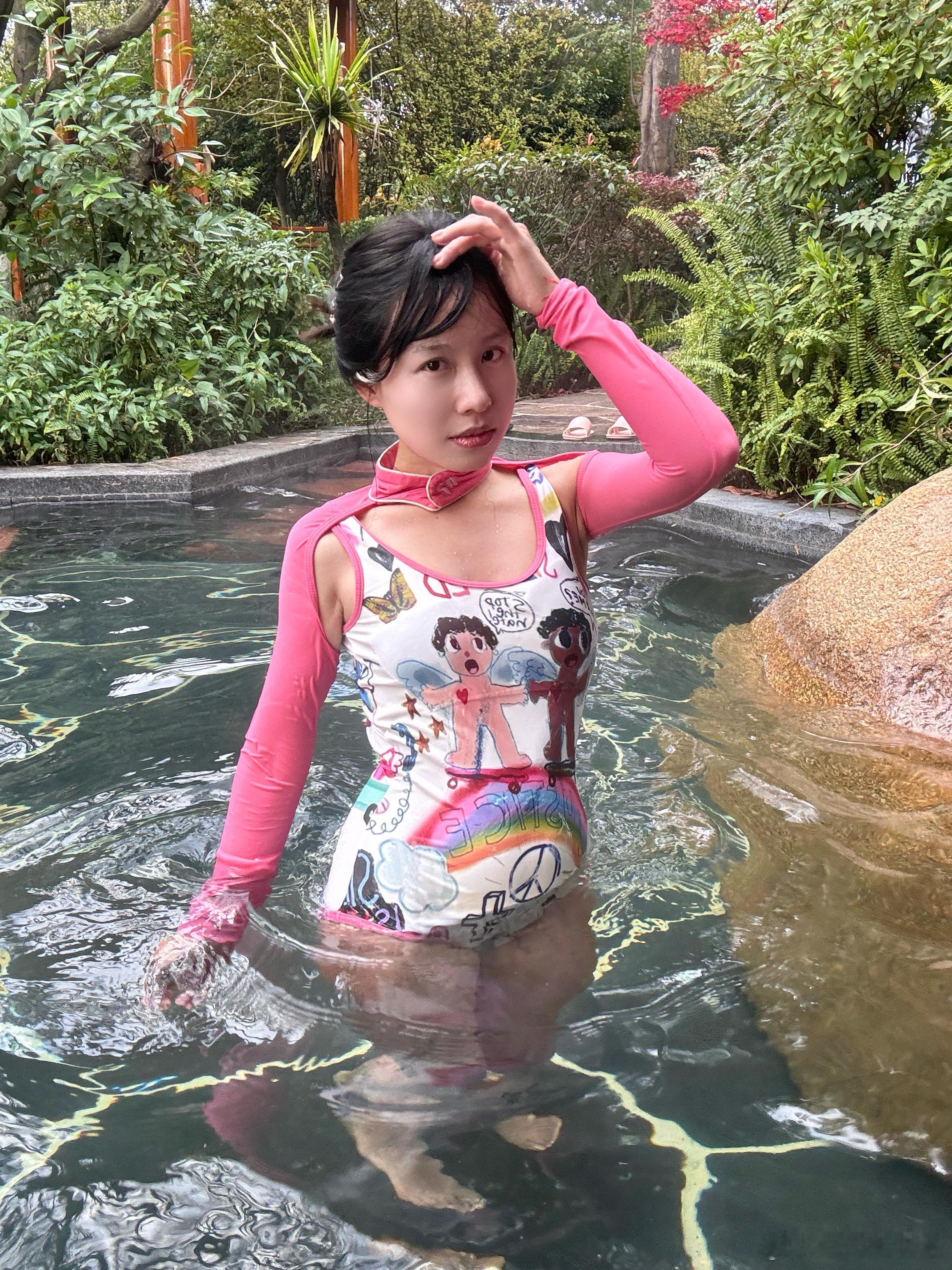 在池子里换了套衣服野生比基尼泡在水里跟大青蛙一样