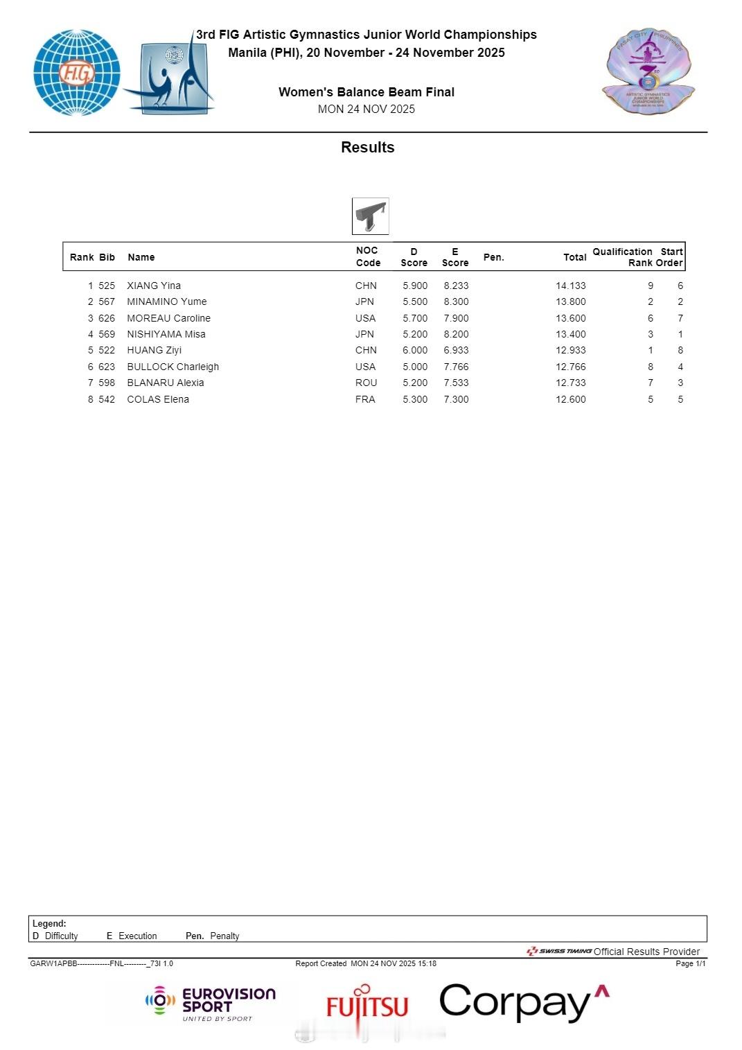 【体操世青赛向伊娜平衡木封后 中国4金独占鳌头】 11月24日马尼拉,2025年体操世青赛结束最后一个比赛日。中国选手再夺1金1铜,以4金3铜在金牌榜上独占鳌头。在今天的比赛中,向伊娜以14.133分夺得平衡木金牌,黄紫艺名列第四。杨兰斌以13.600分夺得男子双杠铜牌,郑奥排名第五。