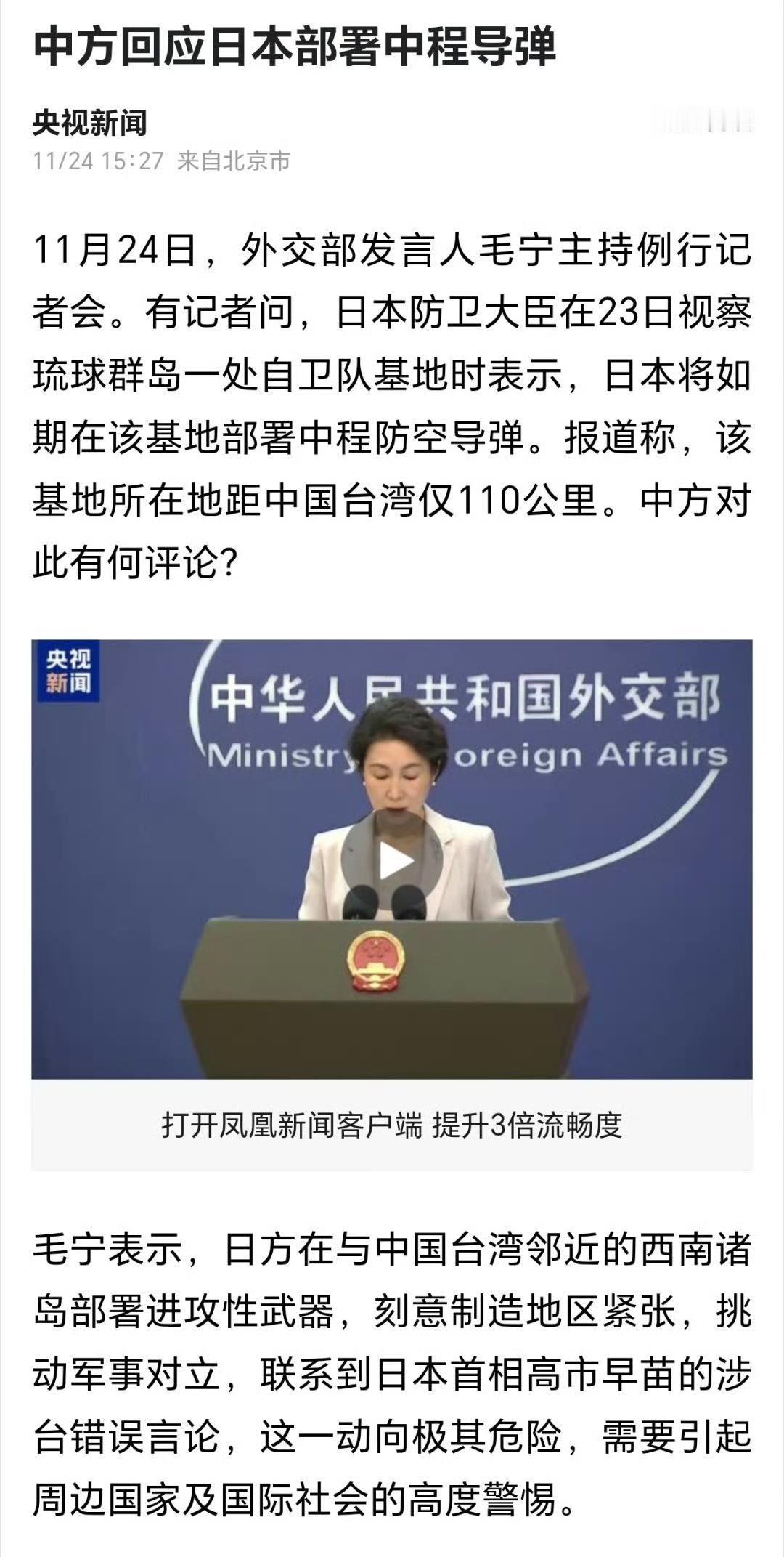 日本非但不收敛,反而还推进与那国岛的导弹部署。与那国岛在哪里?琉球群岛最南端,台湾东北方向110公里处。 1943年开罗会议,美国总统罗斯福两次提议将琉球交给中国,蒋介石都回复应该由中美共管,让美国先管着。 这导致一个严重后果,《开罗宣言》没有明确琉球归属哪国,只有一句"琉球不应该属于日本"。 1945年,美国占领琉球。 1971年美国将琉球交给日本。没有提主权,也没和中国商议,就这么让日本接管了。 虽然目前宣布的是只部署日本自产的03式中短程防空导弹系统,但这个口子一开,未来部署爱国者,乃至反舰导弹系统都是有可能的。