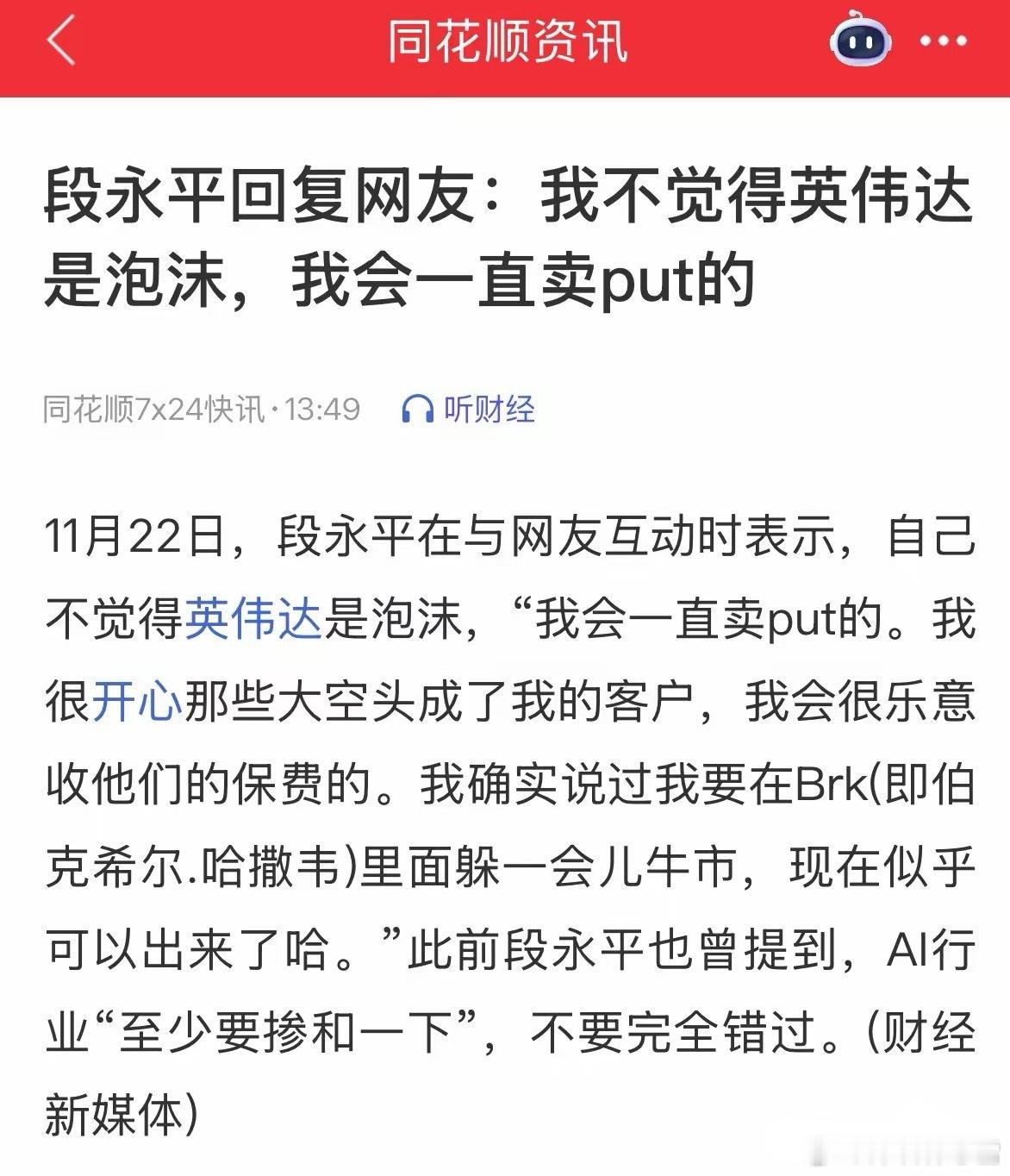 【重大利好】千亿美元身价投资人段永平发声,明确英伟达非泡沫,认可AI赛道长期价值,称“至少应参与切勿错过”。作为AI算力核心关联板块,CPO行业需求持续爆发,长期看涨逻辑稳固。散户可参考底仓布局,把握低吸高抛节奏,理性把握行业红利。