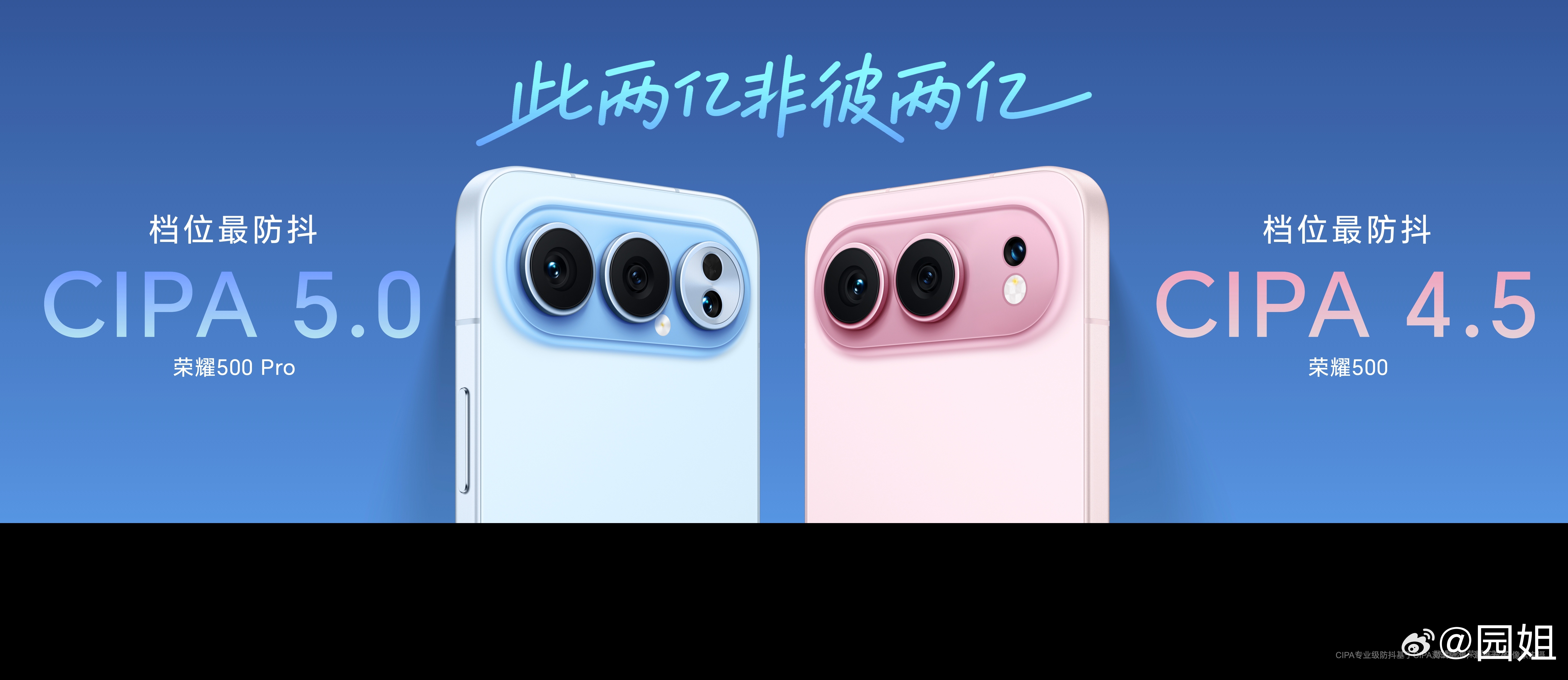 荣耀500 Pro在2亿大底的基础上,新增旗舰级CIPA5.0光学防抖,带来接近专业微单水准的夜拍体验,堪称“口袋微微单”。同时,Pro更配备5000万长焦镜头,拍摄人像和细节都更到位,提供更专业的拍摄体验。荣耀500系列首发行业唯一前后置Live人像美颜&虚化,既能还原美貌,又带来“帧帧主角”的虚化效果,加上6款胶片色彩算法,随手拍出电影感。荣耀500系列还带来超多Live玩法,行业领先“破框而出”Live特效,一拍二消三出框。裸眼3D”朋友圈轻松实现,Live路人一键消除。4K视频转Live功能也让分享更加便捷多样,4k Live高质朋友圈轻松搞定。此外,荣耀500系列更化身“随身修图师”,支持YOYO一语暗光增强、一语贴纸合拍等功能,玩法多样,趣味翻倍。