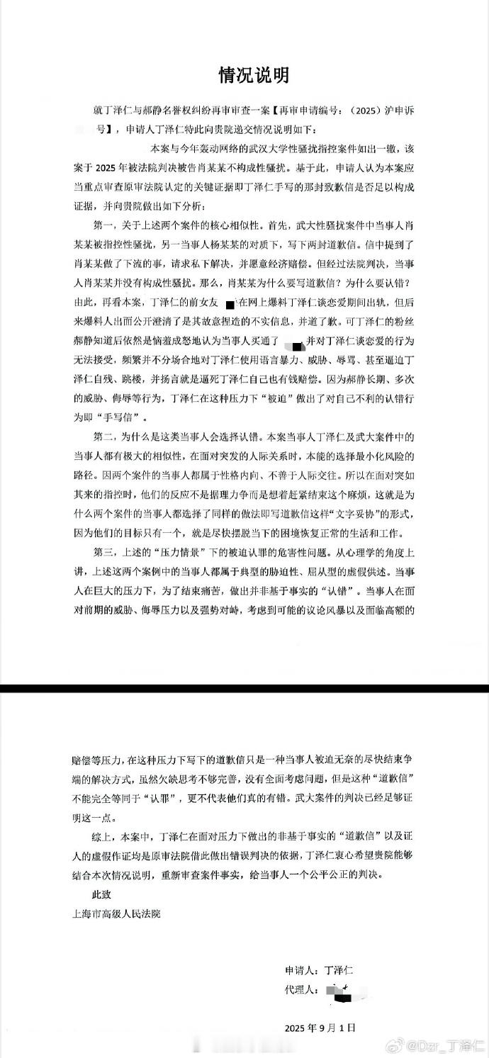 刚刚,丁泽仁再发文,喊话“唯一的姐”删除判决书:“郝女士方在法院明确警告不允许公开判决书的前提下晒出二审判决结果引导舆论涉嫌司法公正,请郝女士方立即删除此判决结果。”