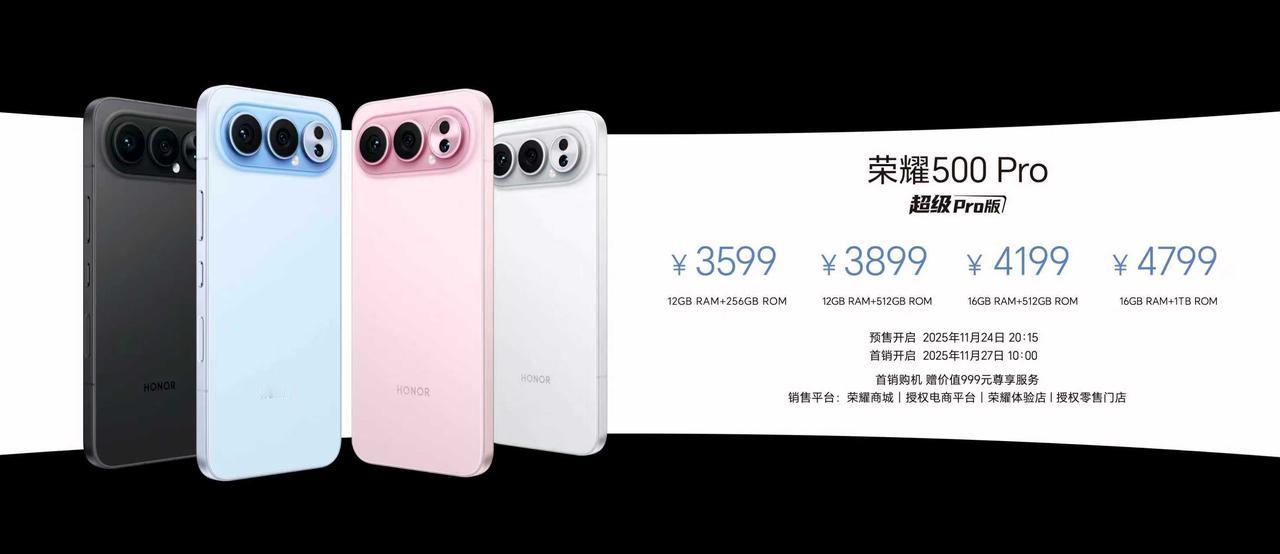 荣耀500标准版 12+256G 2699元 12+512G 2999元 16+512G 3299元 荣耀500 Pro版 12+256GB 3599元 12+512GB 3899元 16+512GB 4199元 16G+1TB 4799元 荣耀500荣耀500起步即超标荣耀500发布会