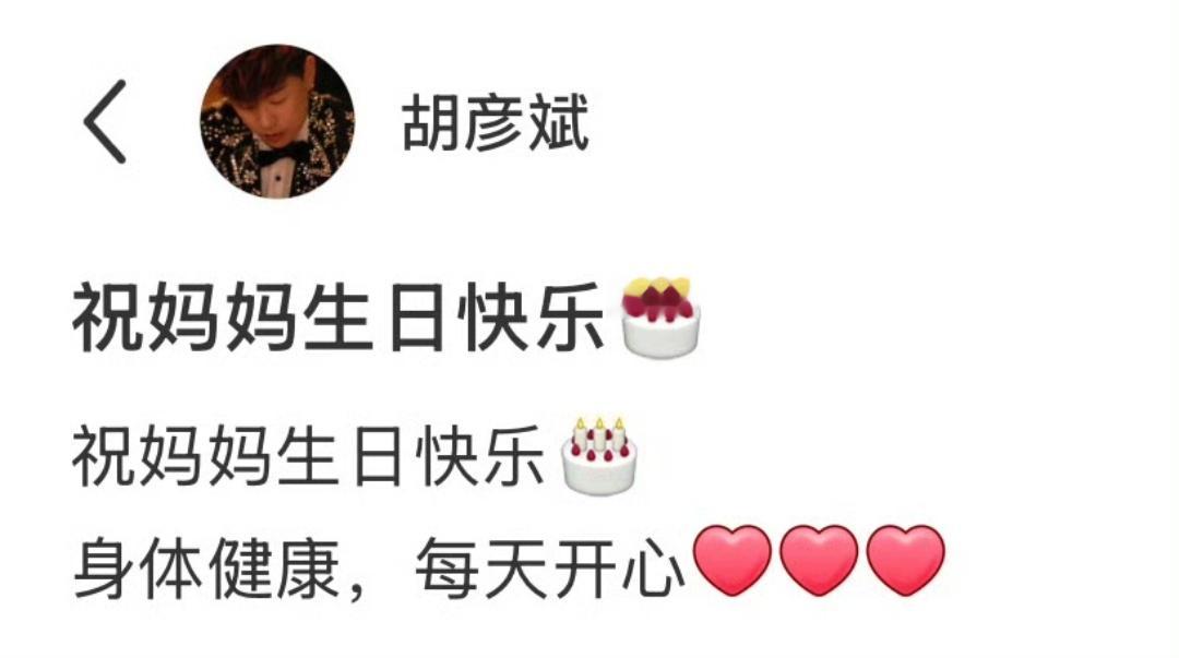 歌手胡彦斌晒合照为自己妈妈庆祝生日,说祝妈妈生日快乐、身体健康,每天都开心。照片里是胡彦斌一家几口人的合影。不得不说,胡彦斌这个长相和妈妈真的是完全一模一样。无论是眉毛还是眼睛,简直就是一个模子刻出来的。有意思的是,这次妈妈过生日,并没有看到胡彦斌的女友也就是前两天上热搜的网红易梦玲,看来两人关系还没有熟悉到见家长的地步。